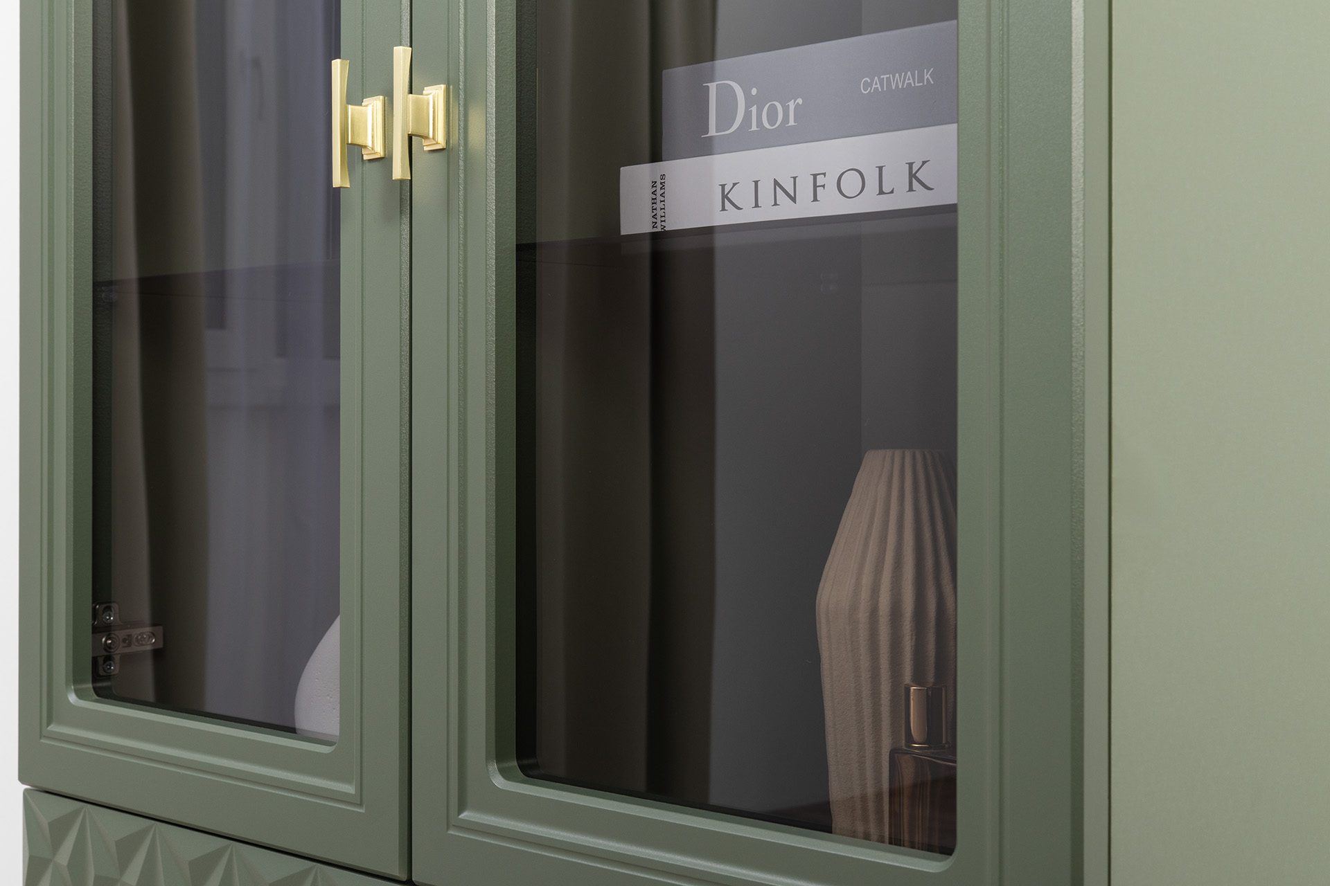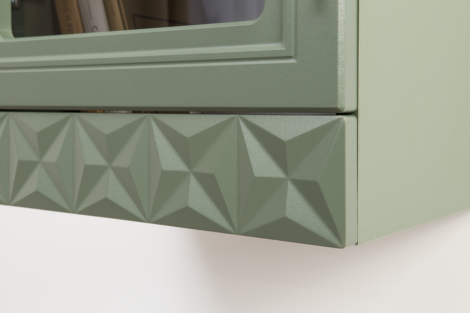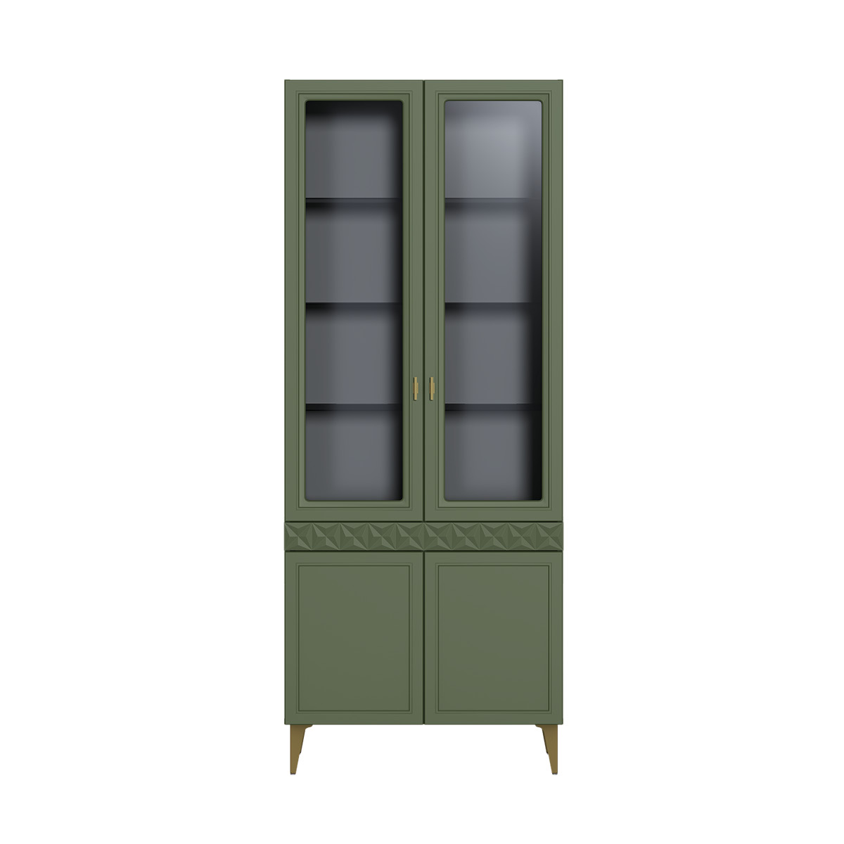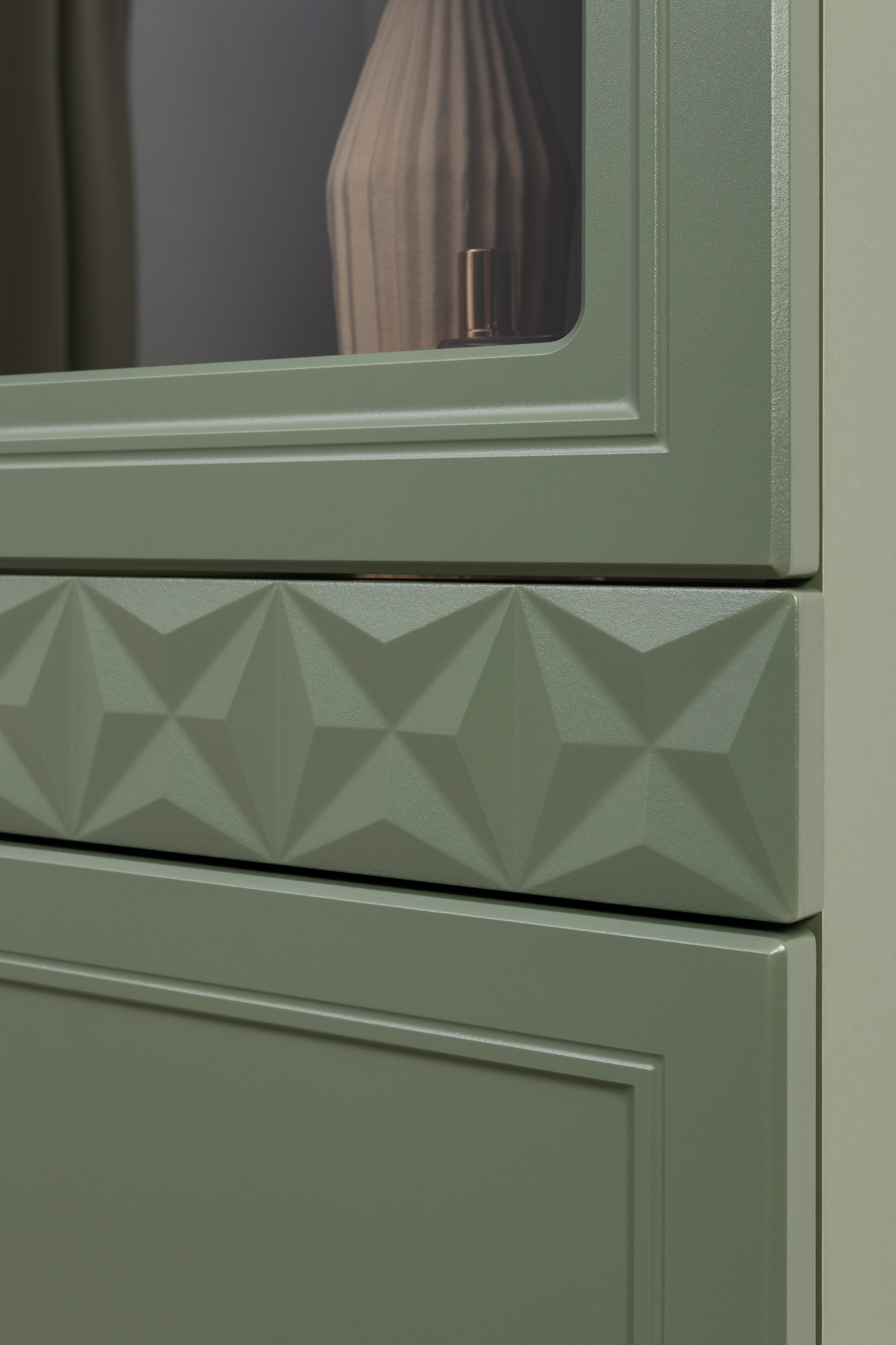 Шкаф-витрина Марион 16.397.02 дымчатый зеленый K521, олива шагрень AG 1050 ПВХ