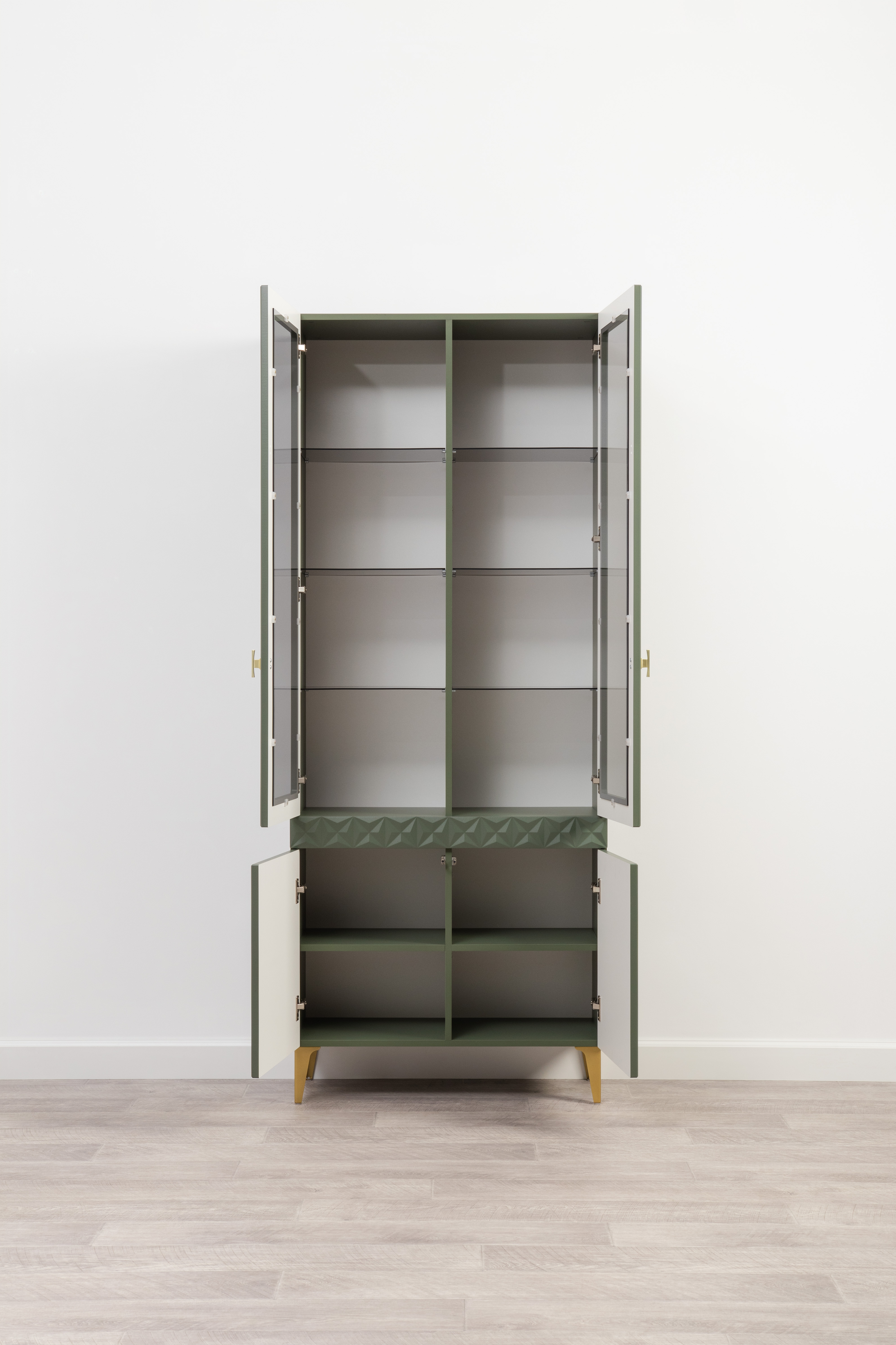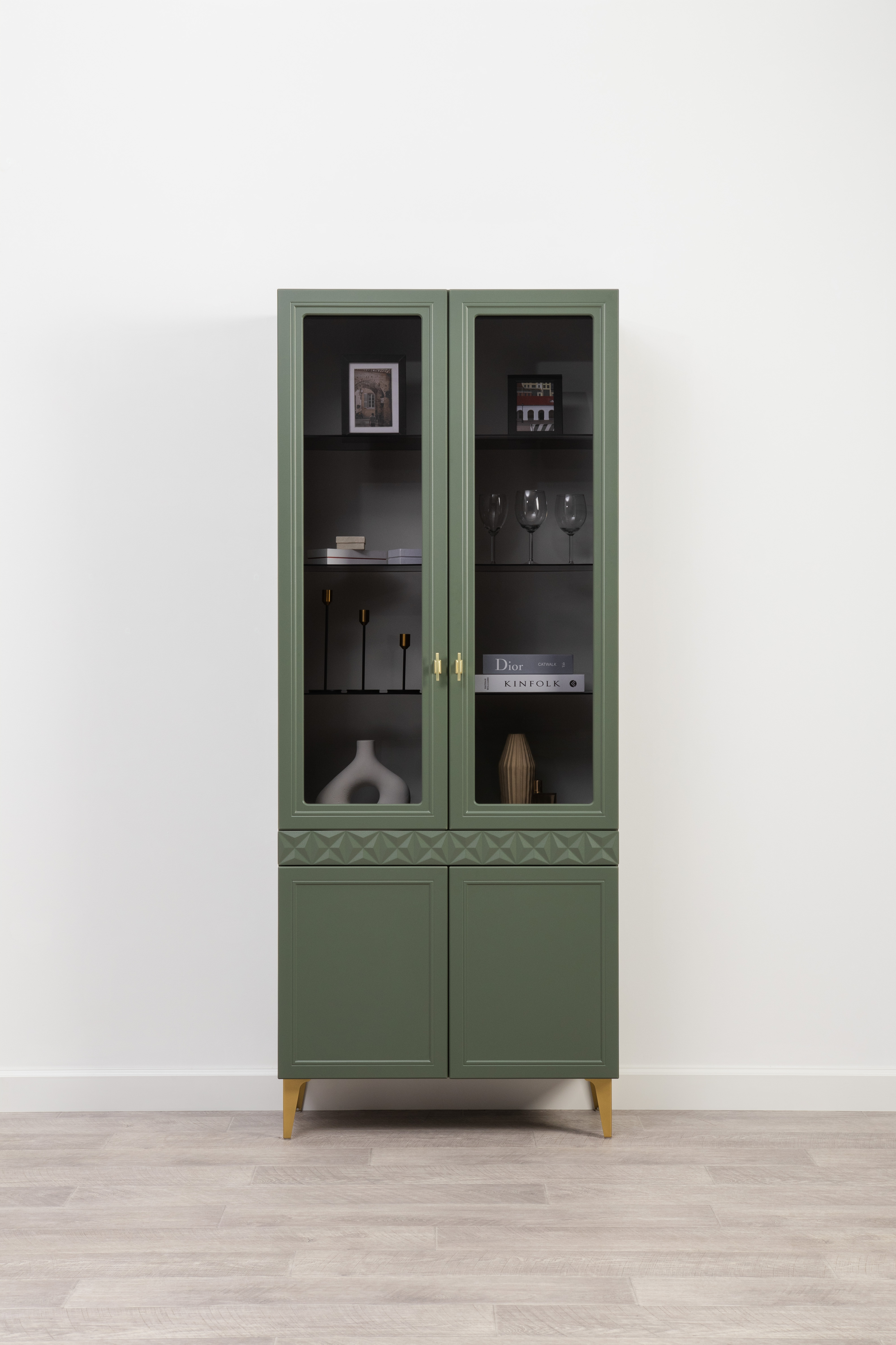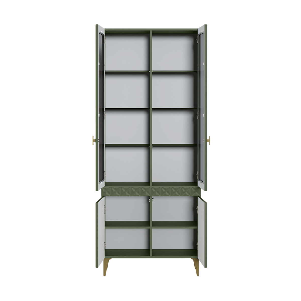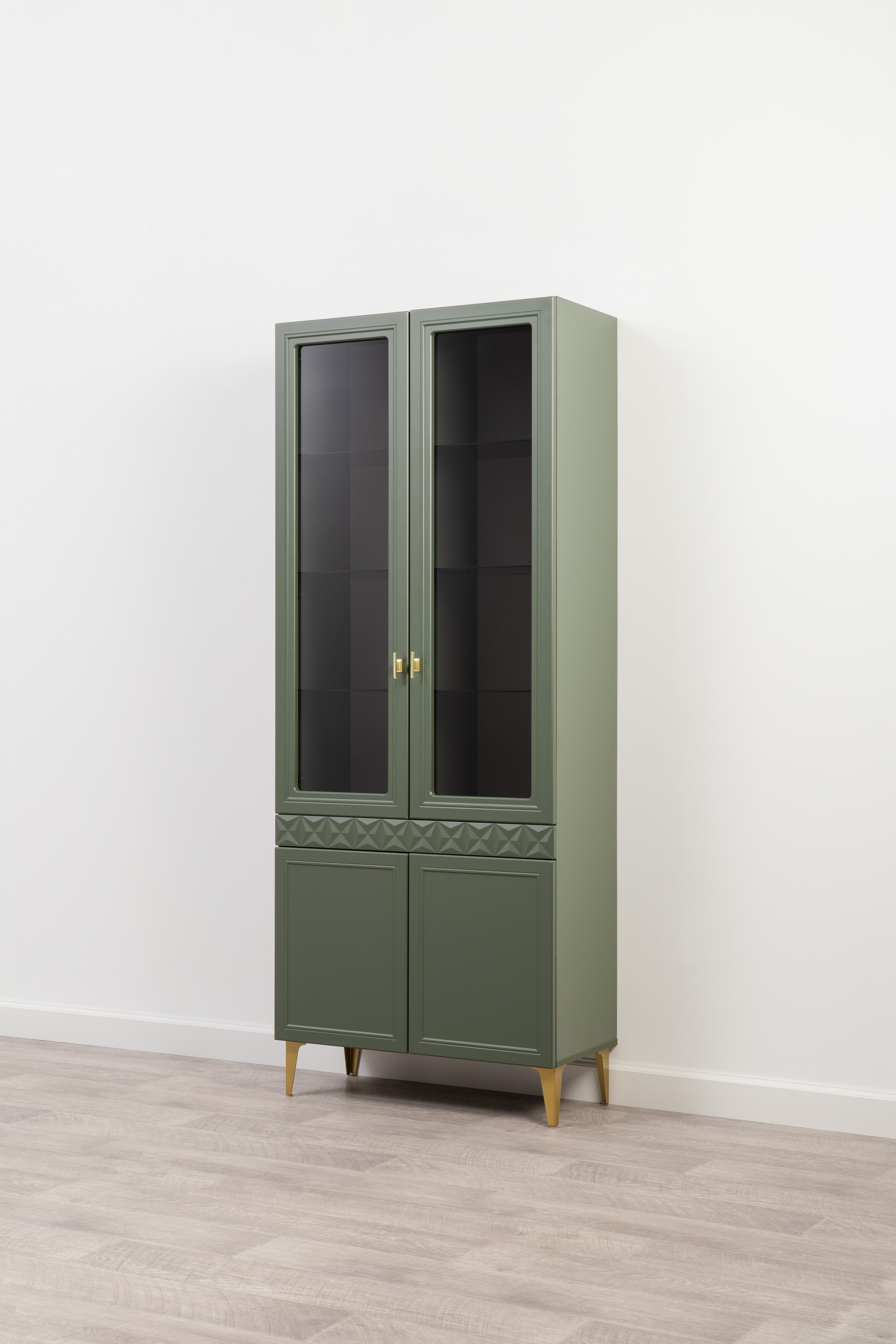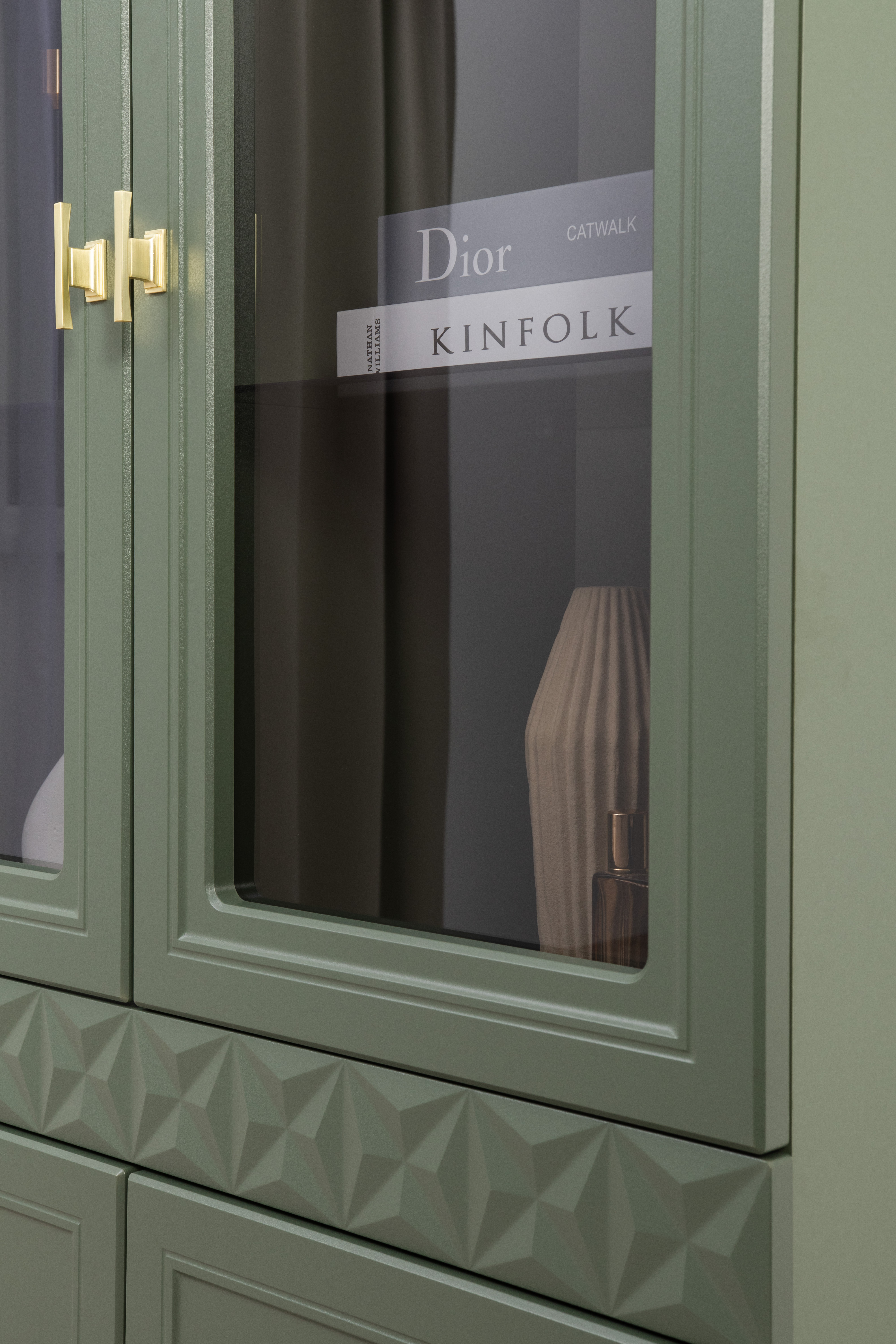 Шкаф-витрина Марион 16.397.02 дымчатый зеленый K521, олива шагрень AG 1050 ПВХ
