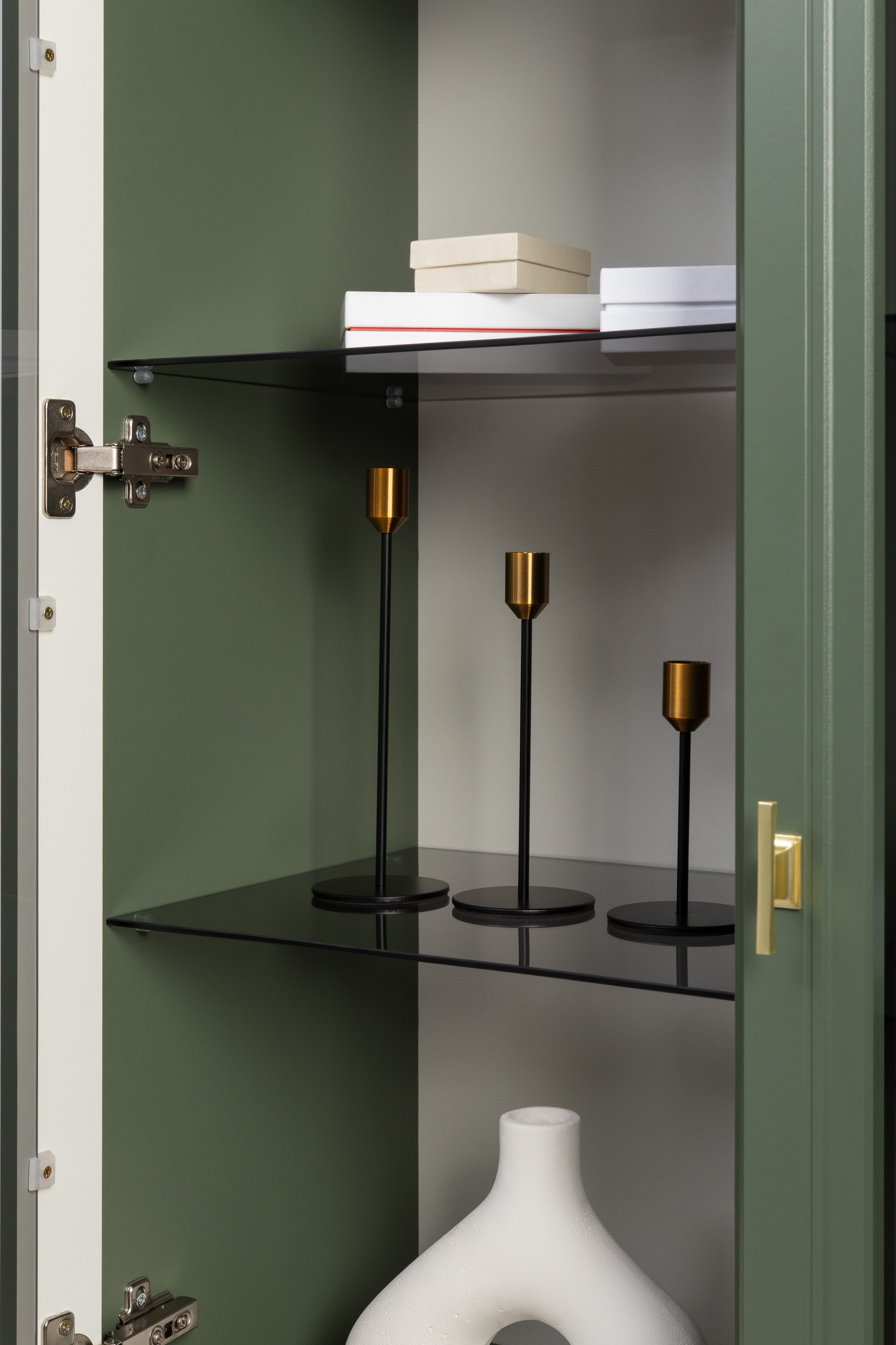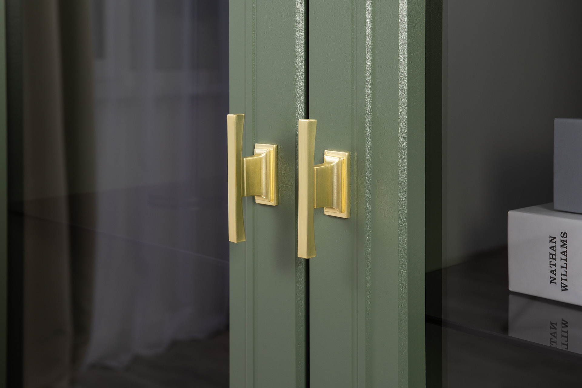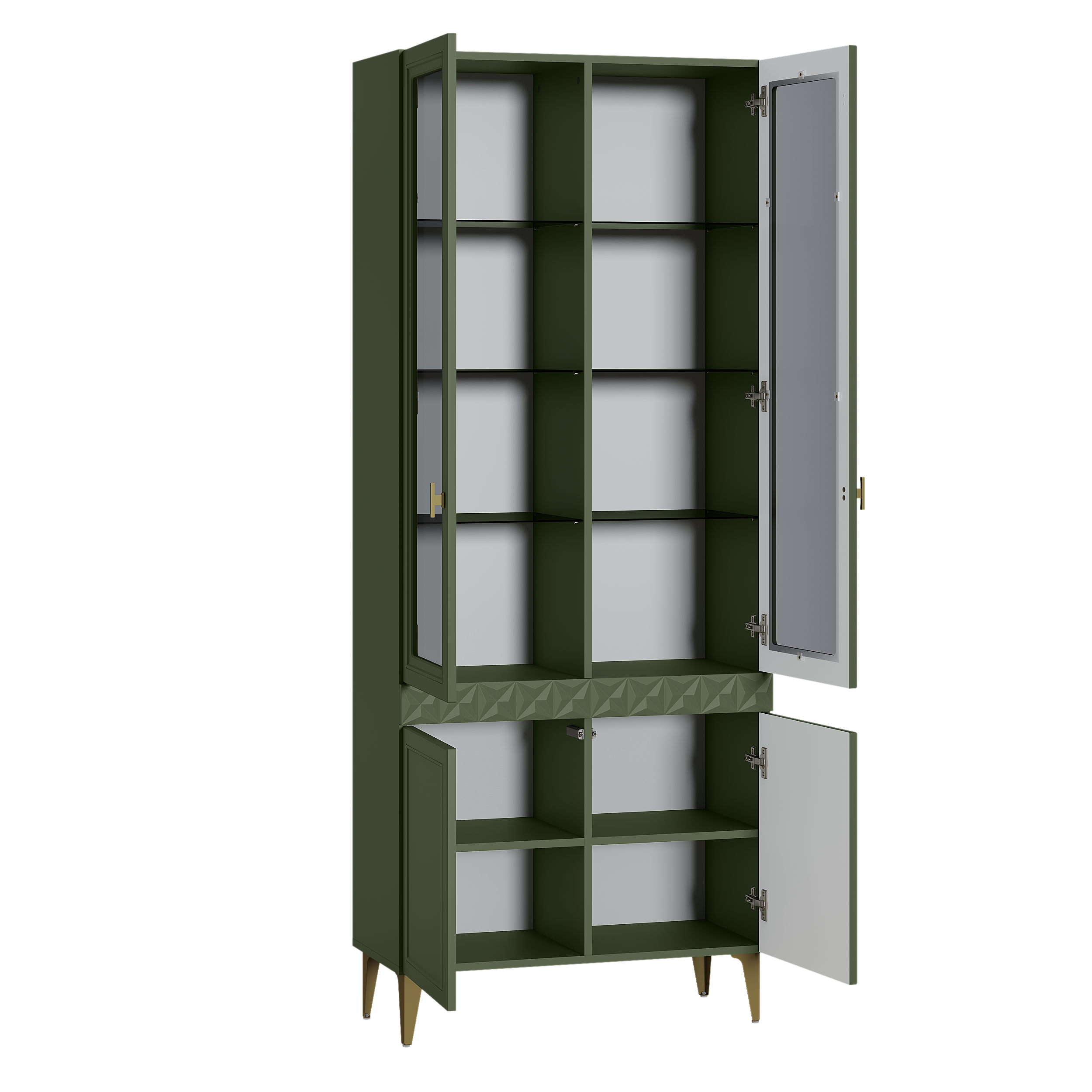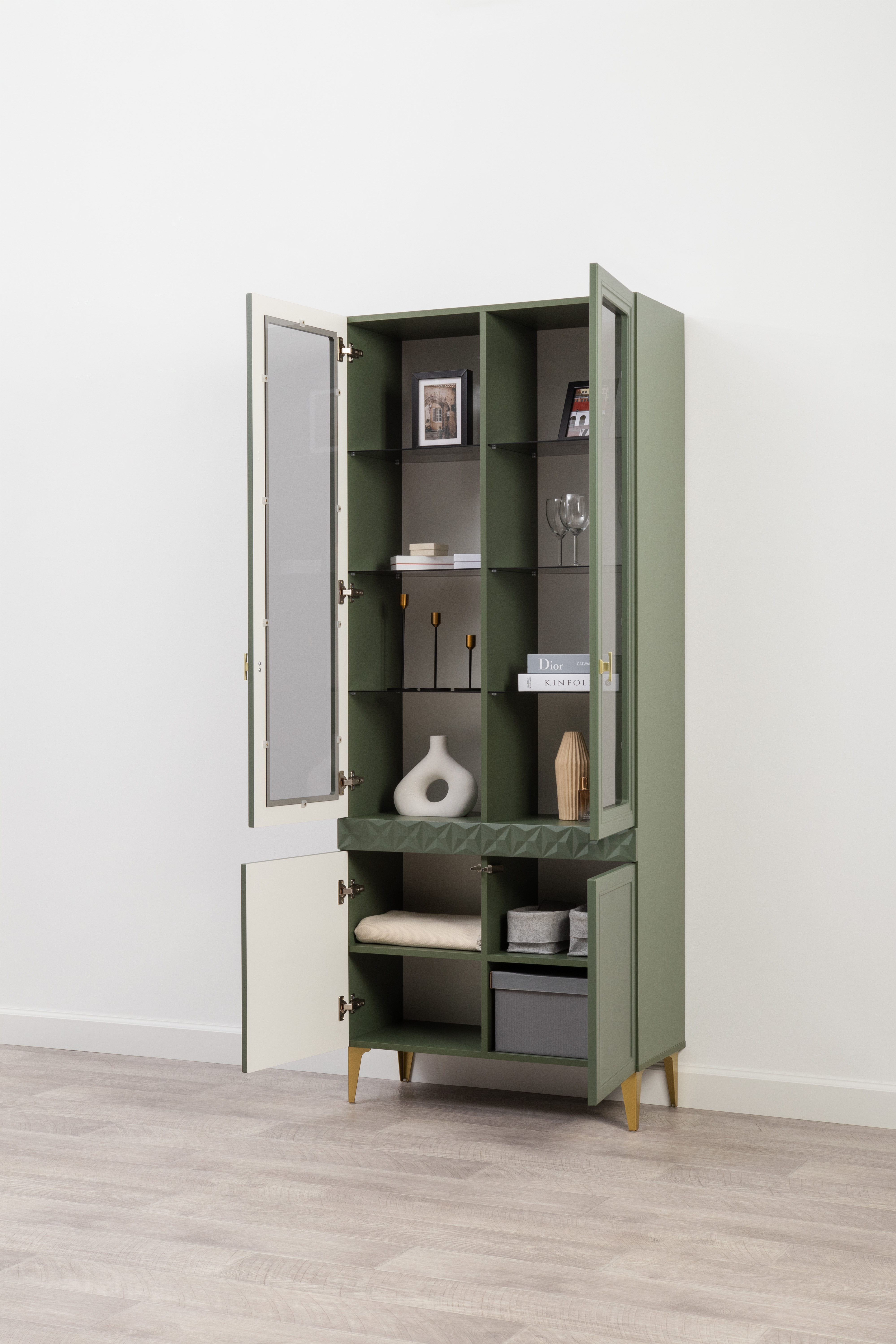 Шкаф-витрина Марион 16.397.02 дымчатый зеленый K521, олива шагрень AG 1050 ПВХ