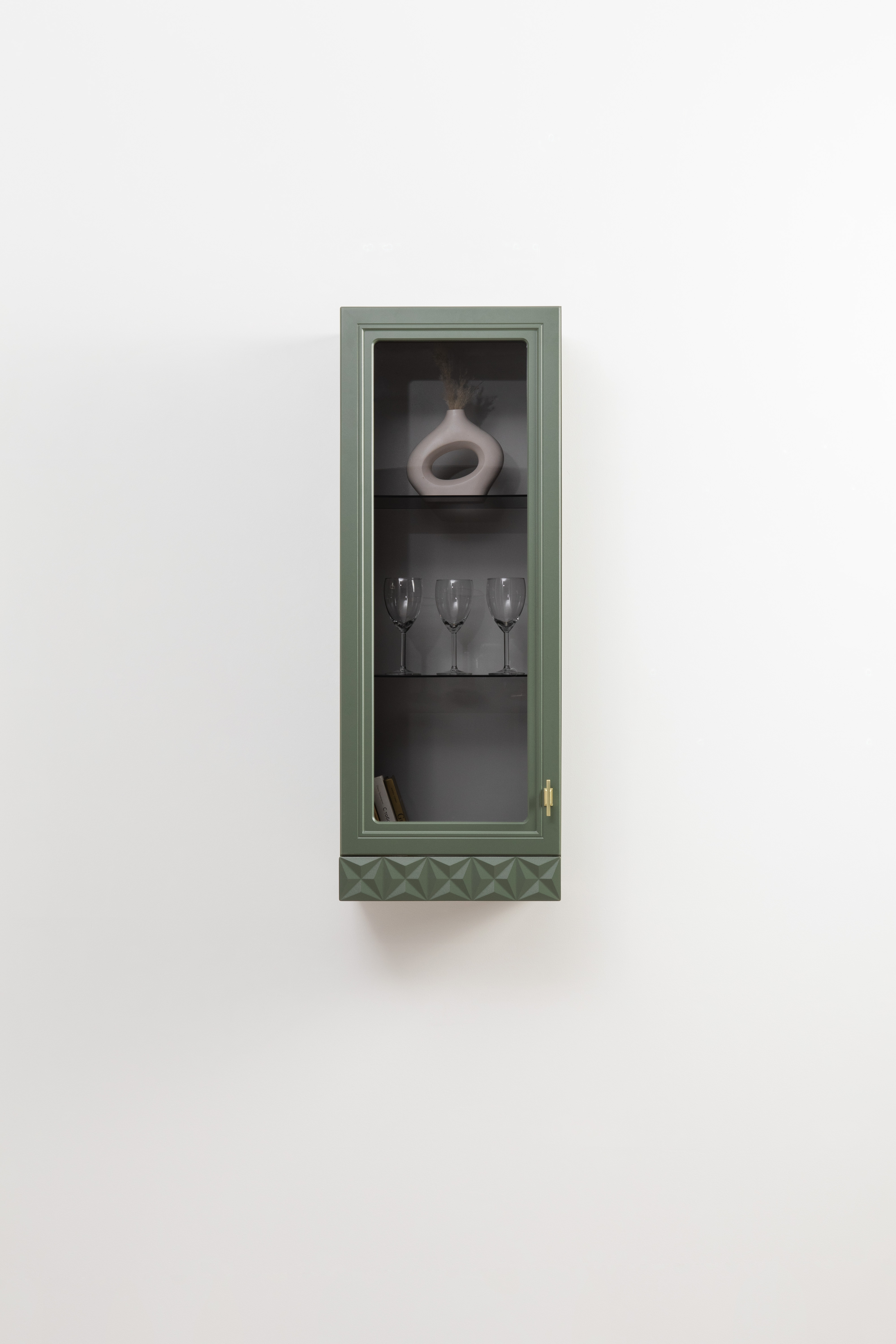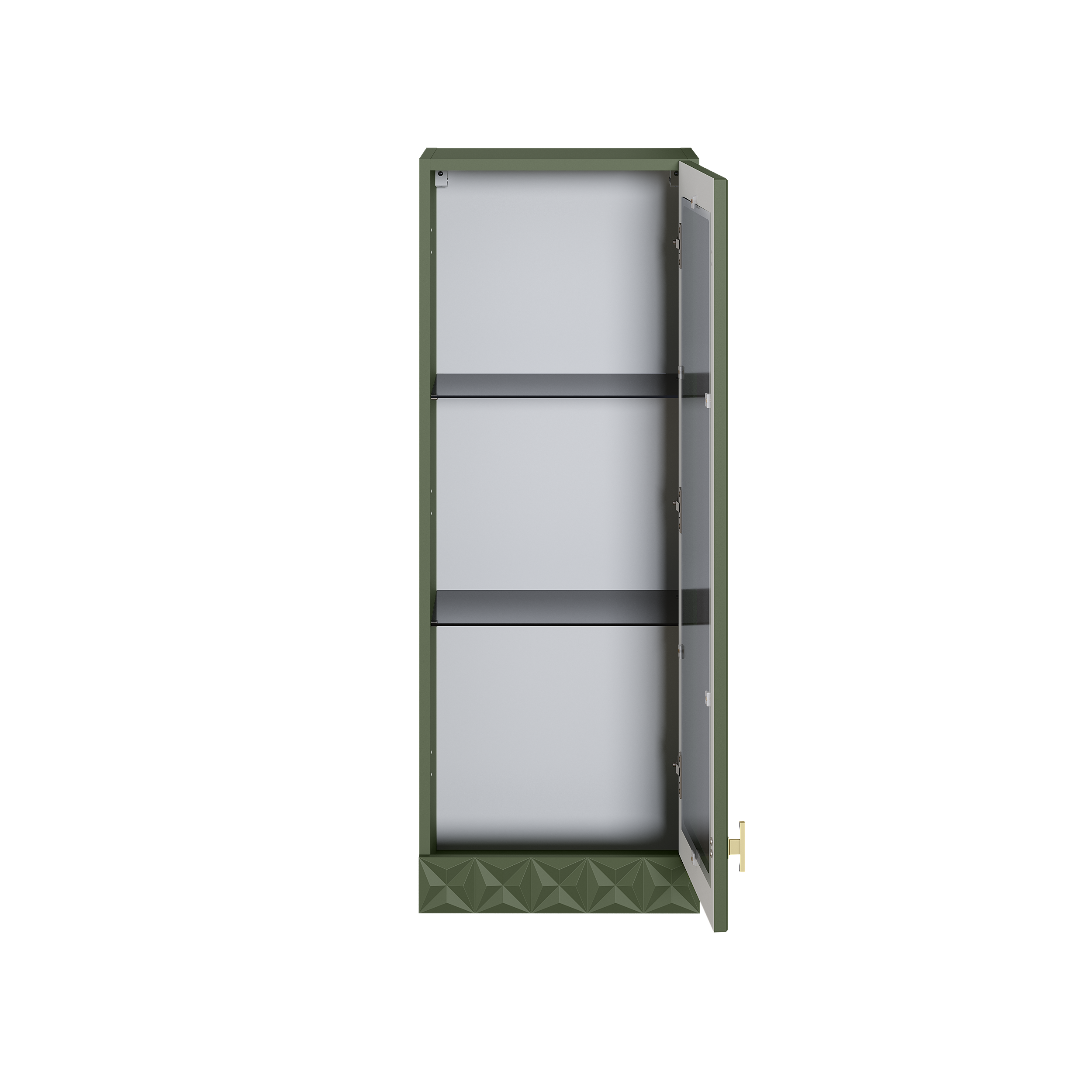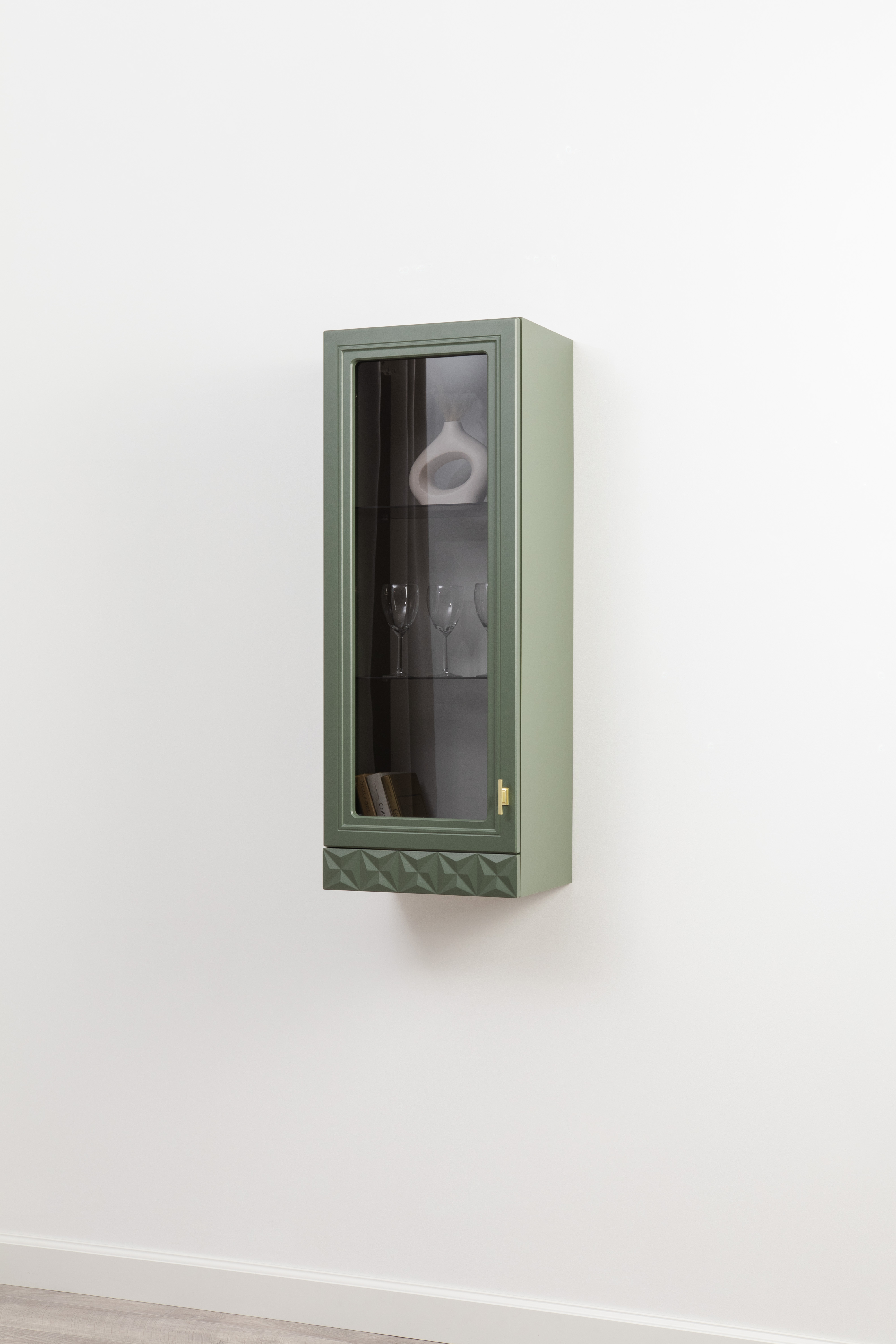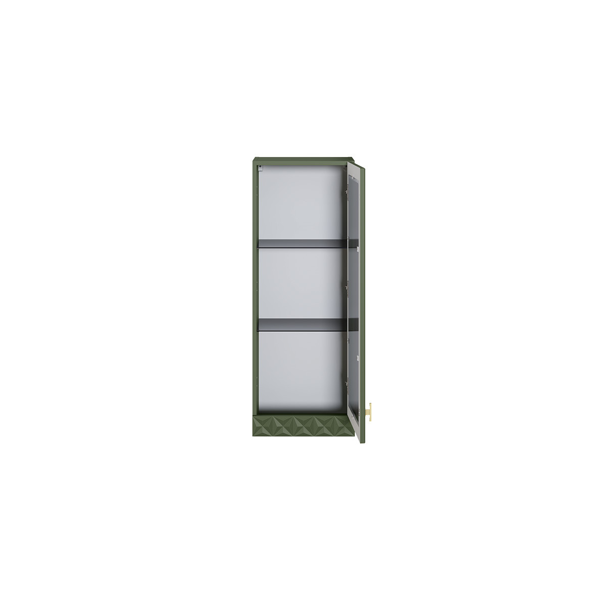 Шкаф-витрина Марион 16.397.01 дымчатый зеленый K521, олива шагрень AG 1050 ПВХ (собирается на любую сторону)