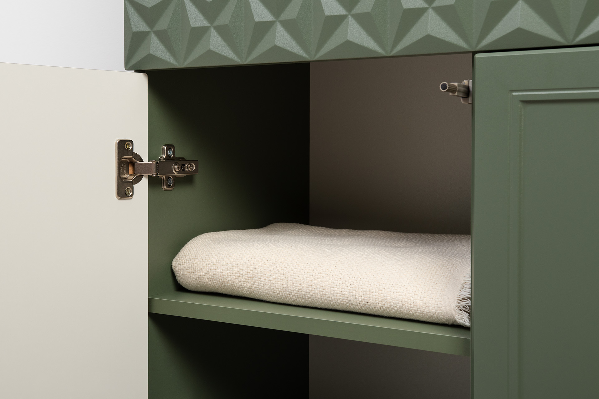 Тумба Марион 16.167 дымчатый зеленый K521, олива шагрень AG 1050 ПВХ, белый PE шагрень