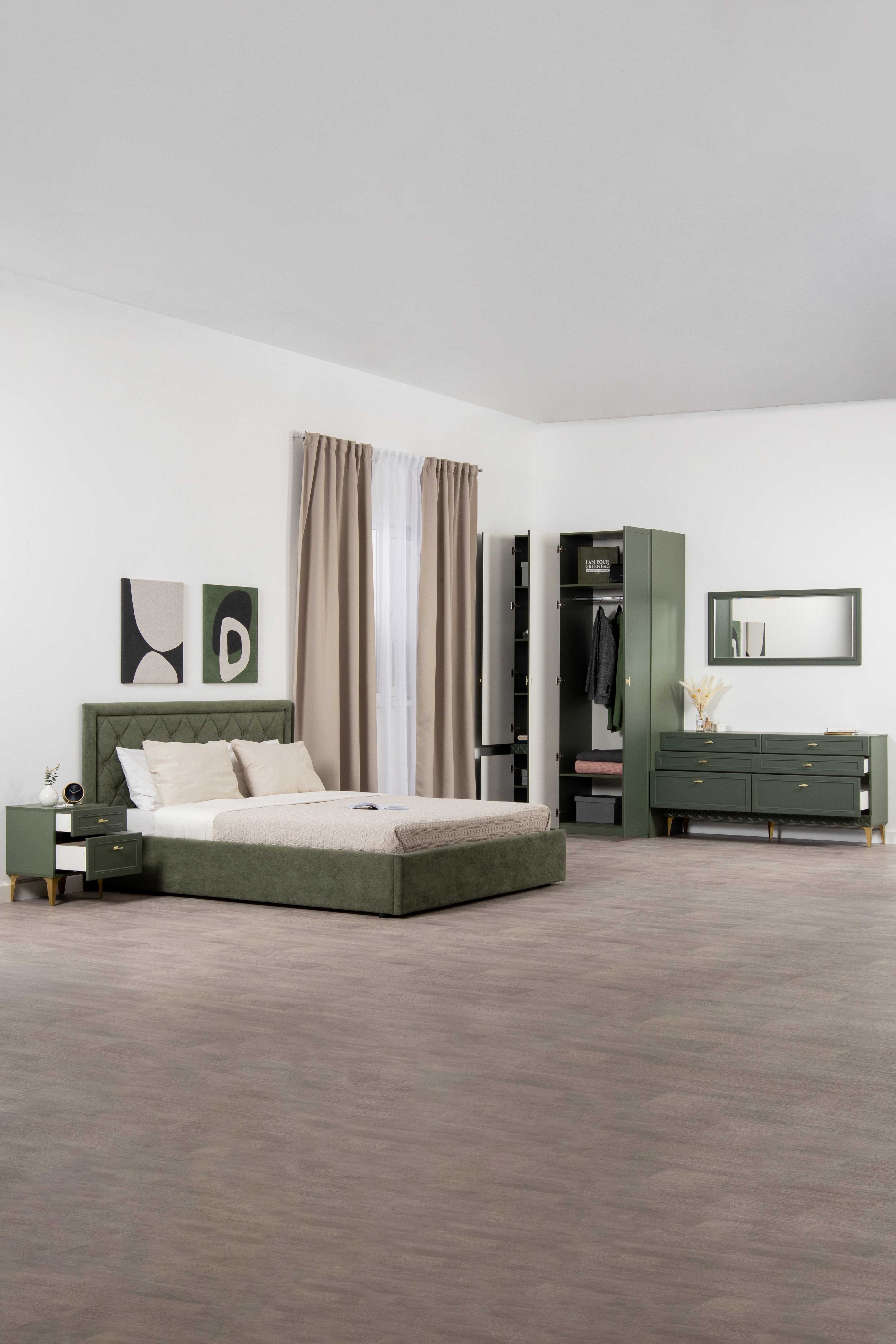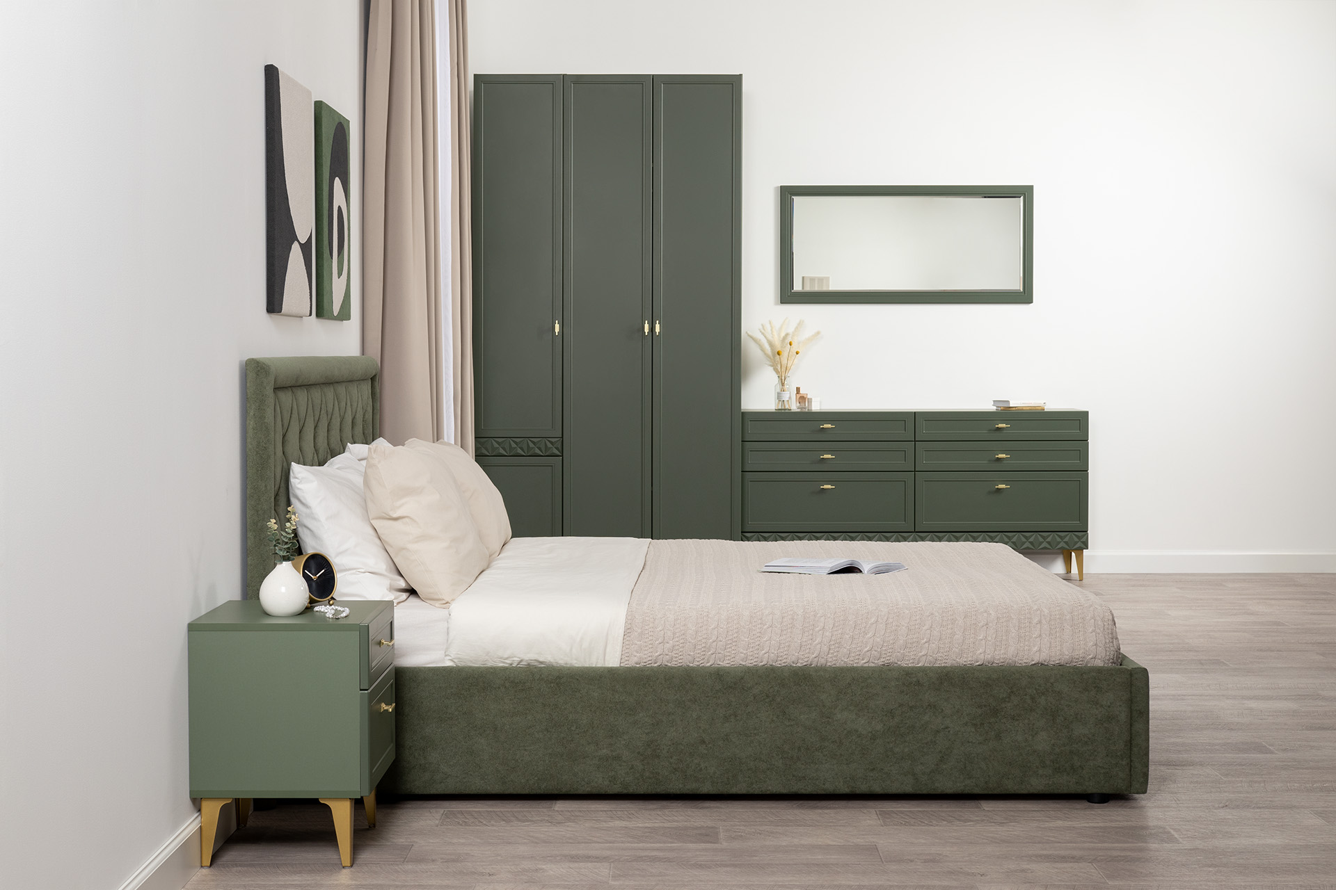 Комод Марион 16.256 дымчатый зеленый K521, олива шагрень AG 1050 ПВХ, белый PE шагрень