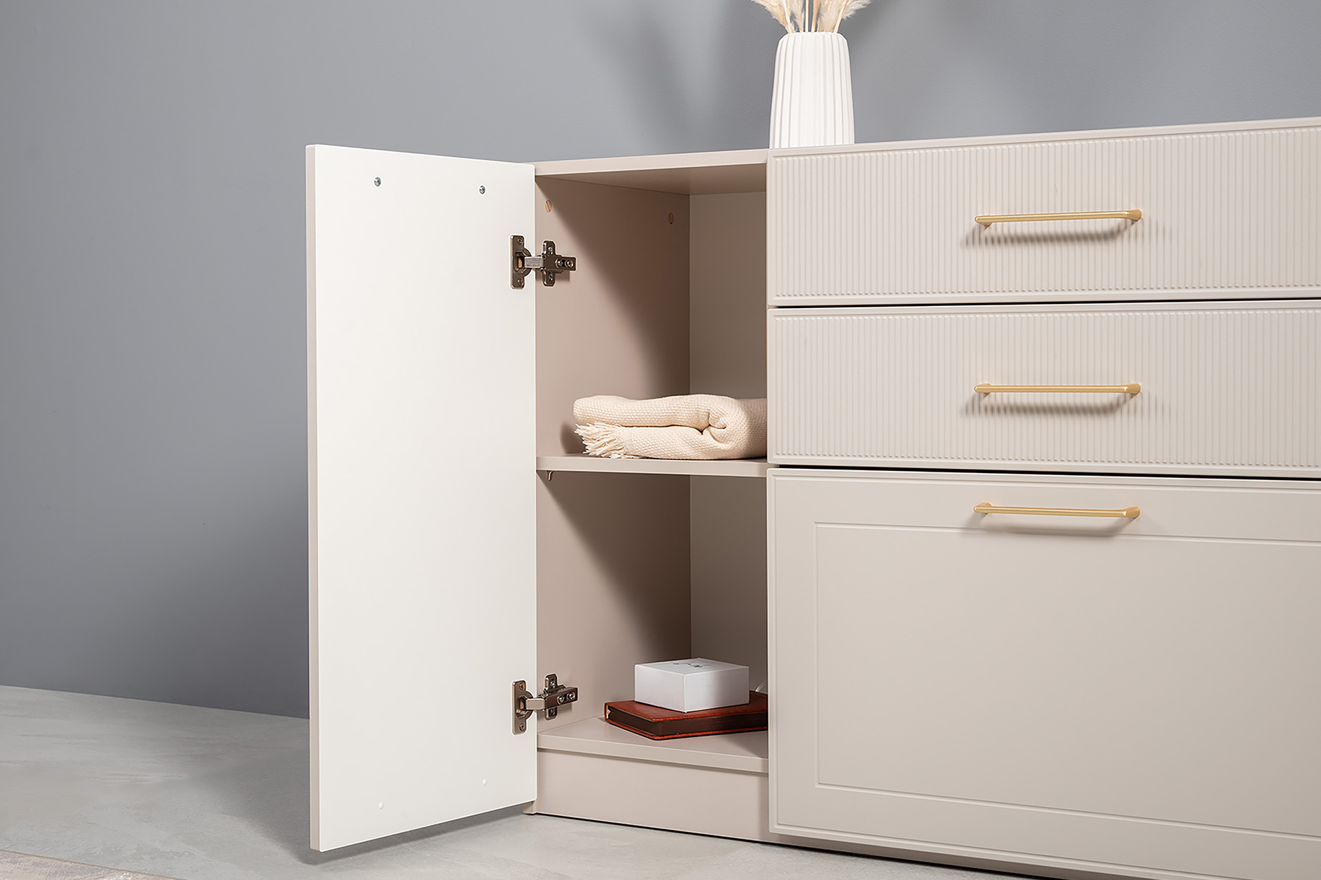 Комод Лакки бук песочный, дуб тортуга ПВХ, белый глянец ПВХ