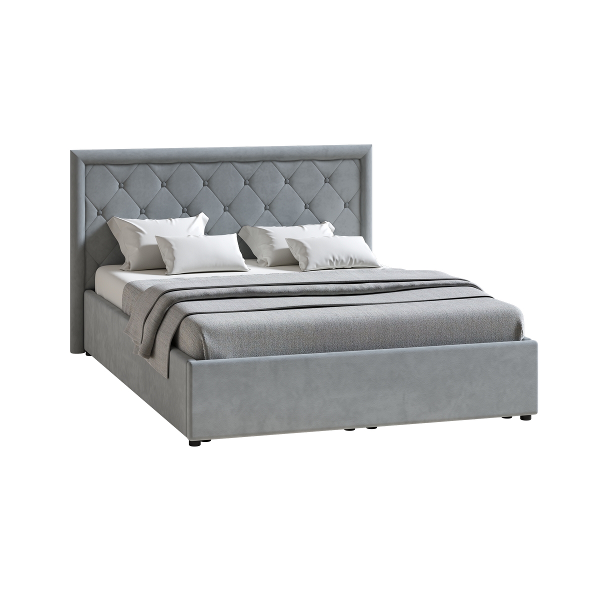 Кровать Марион 140 велюр OCEAN 023 серый с ортопедическим основанием и подъемным механизмом (спальное место 140 х 200)