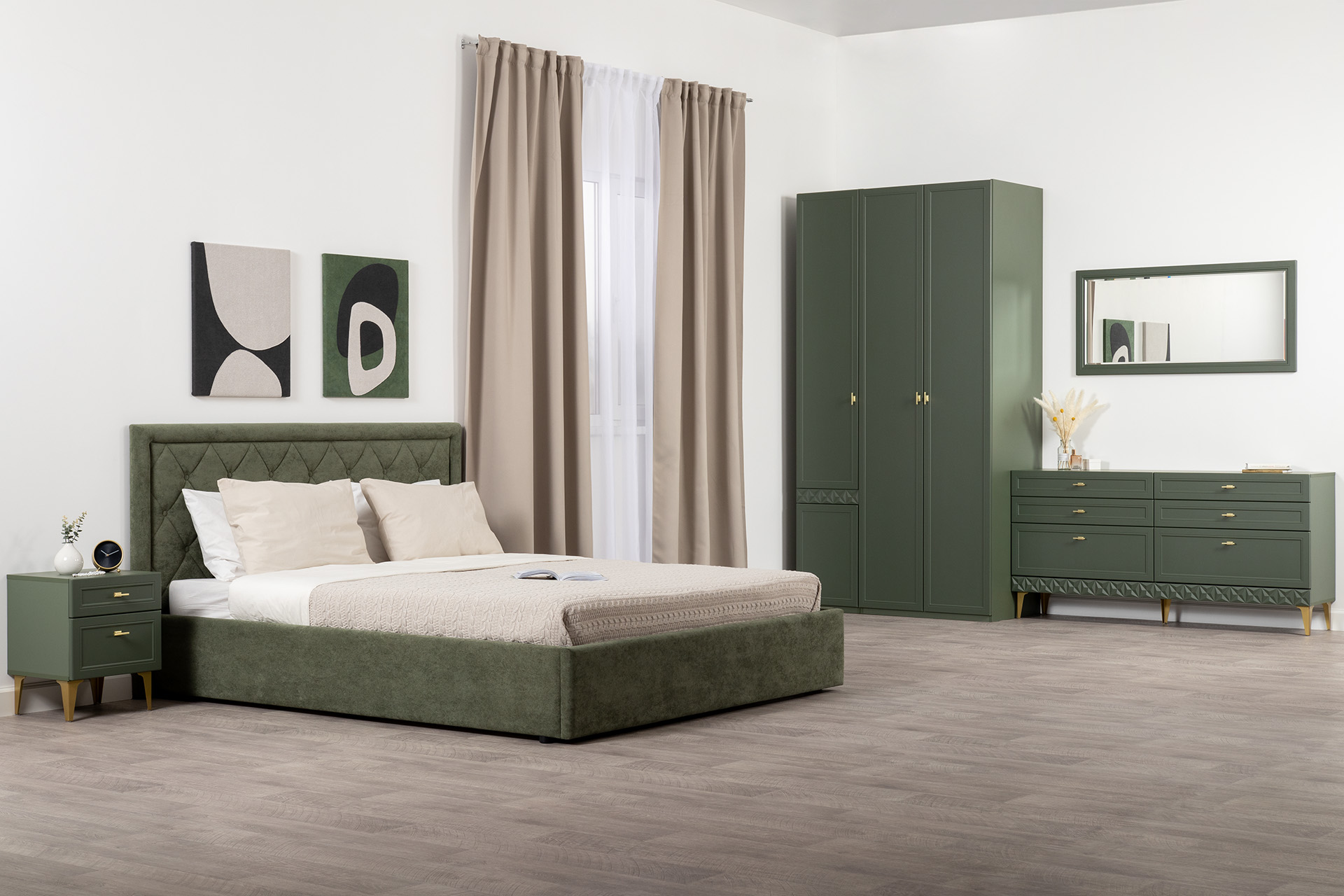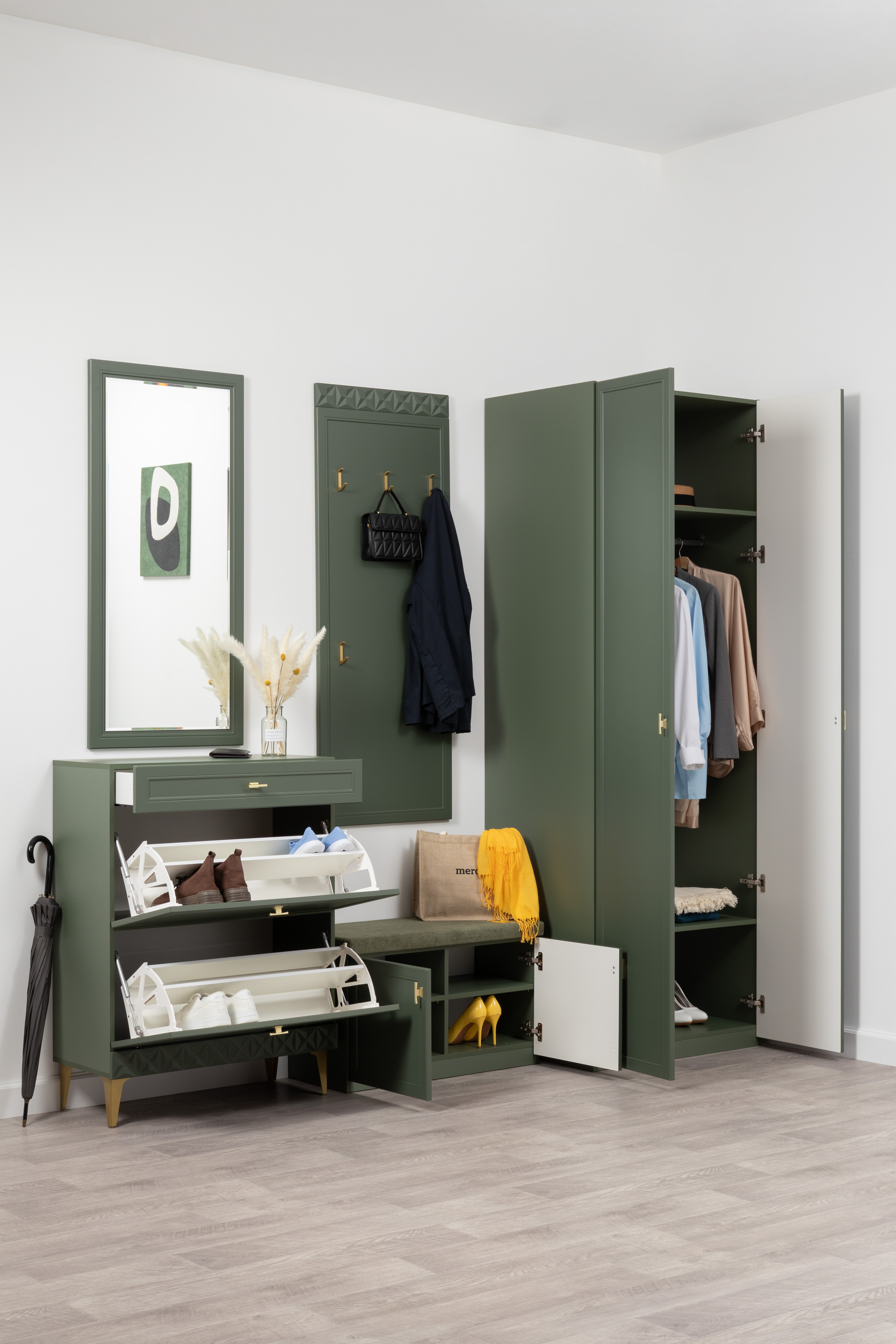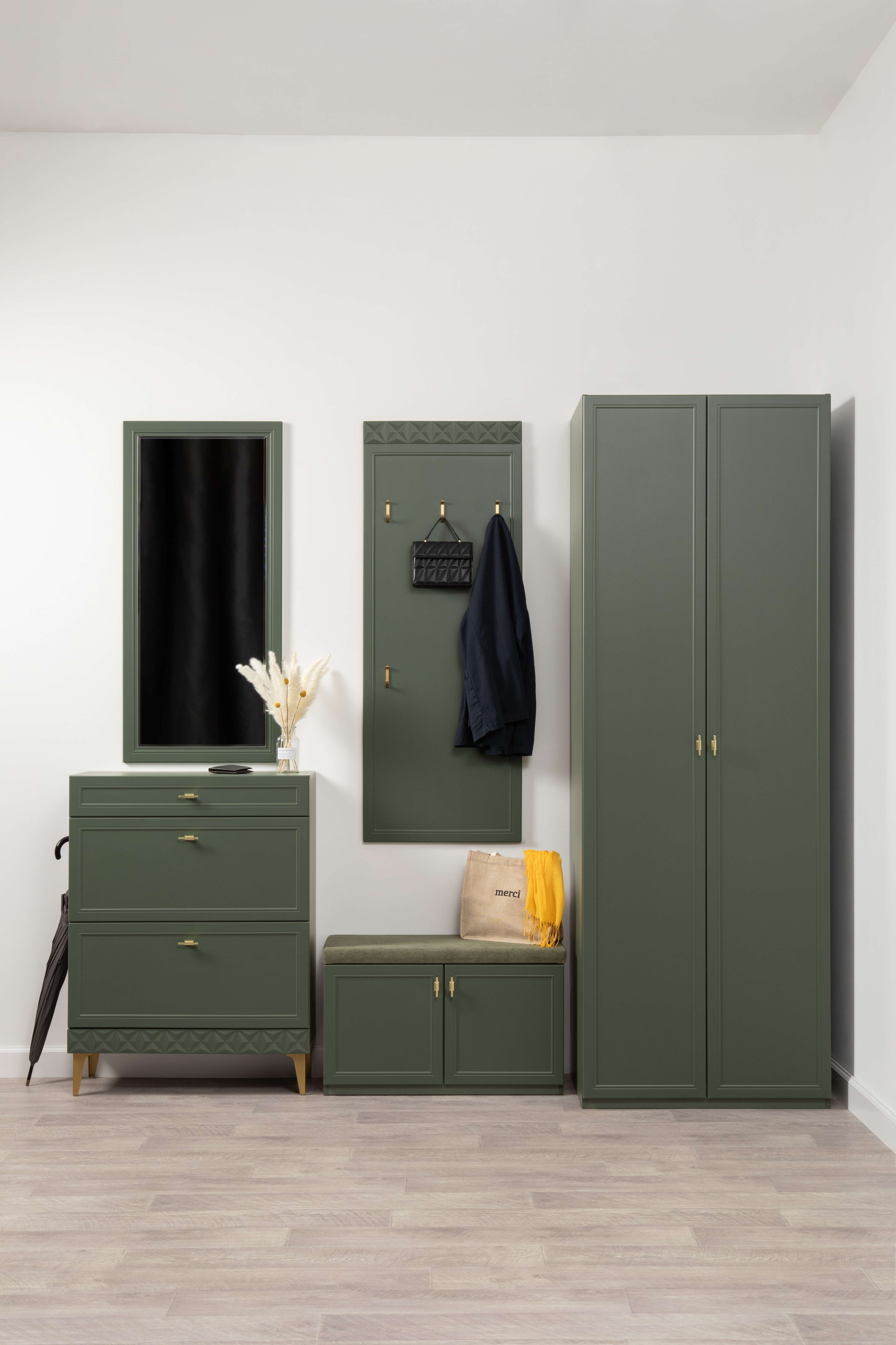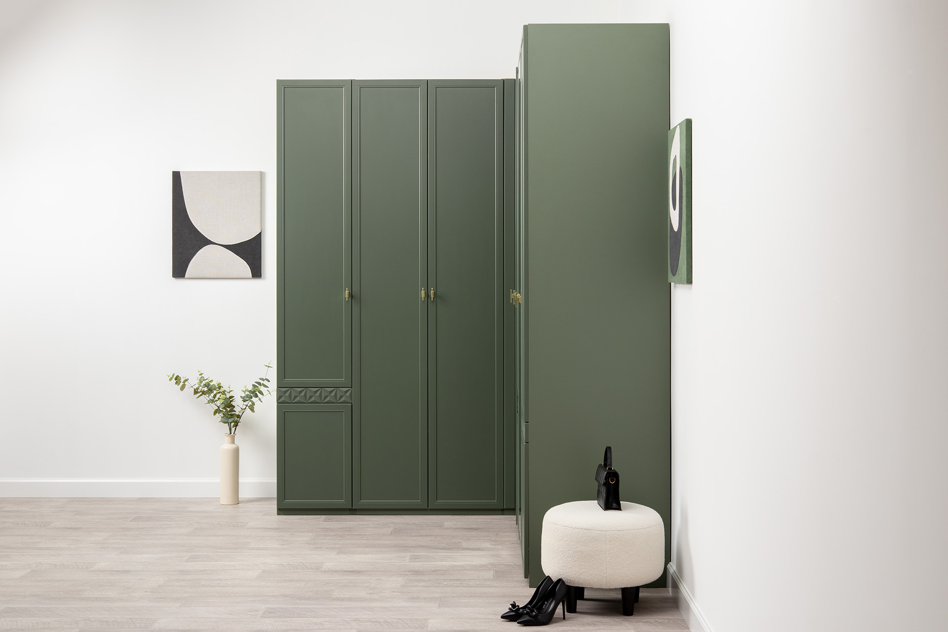 Шкаф двустворчатый Марион 16.340.02 дымчатый зеленый K521, олива шагрень AG 1050 ПВХ