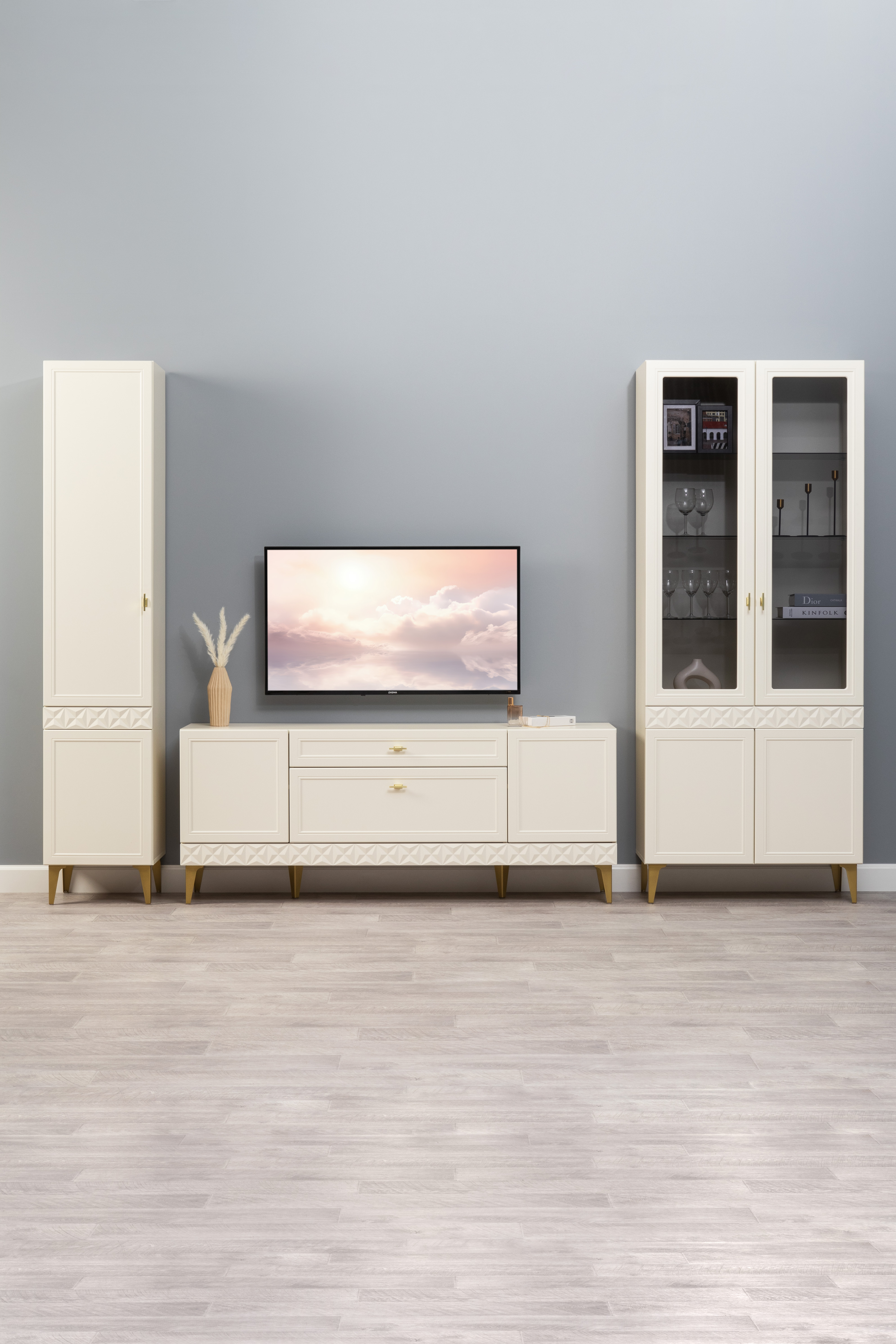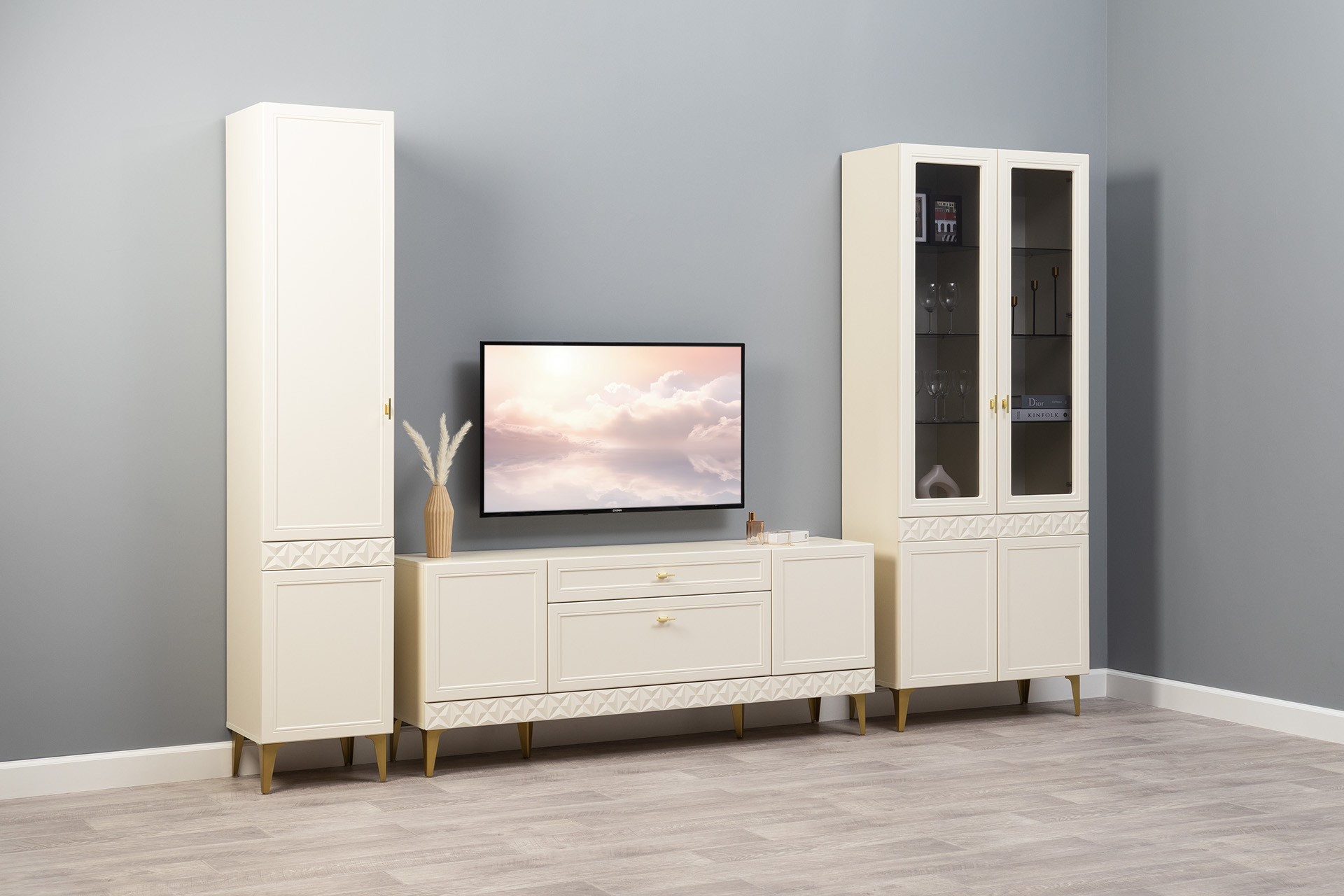 Шкаф-витрина Марион 16.397.01 слоновая кость С341 PE, слоновая кость 6898 ПВХ (собирается на любую сторону)
