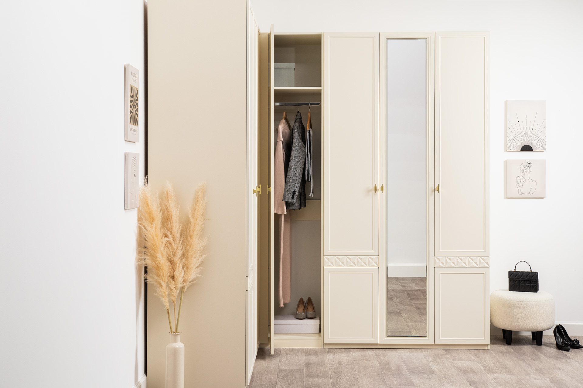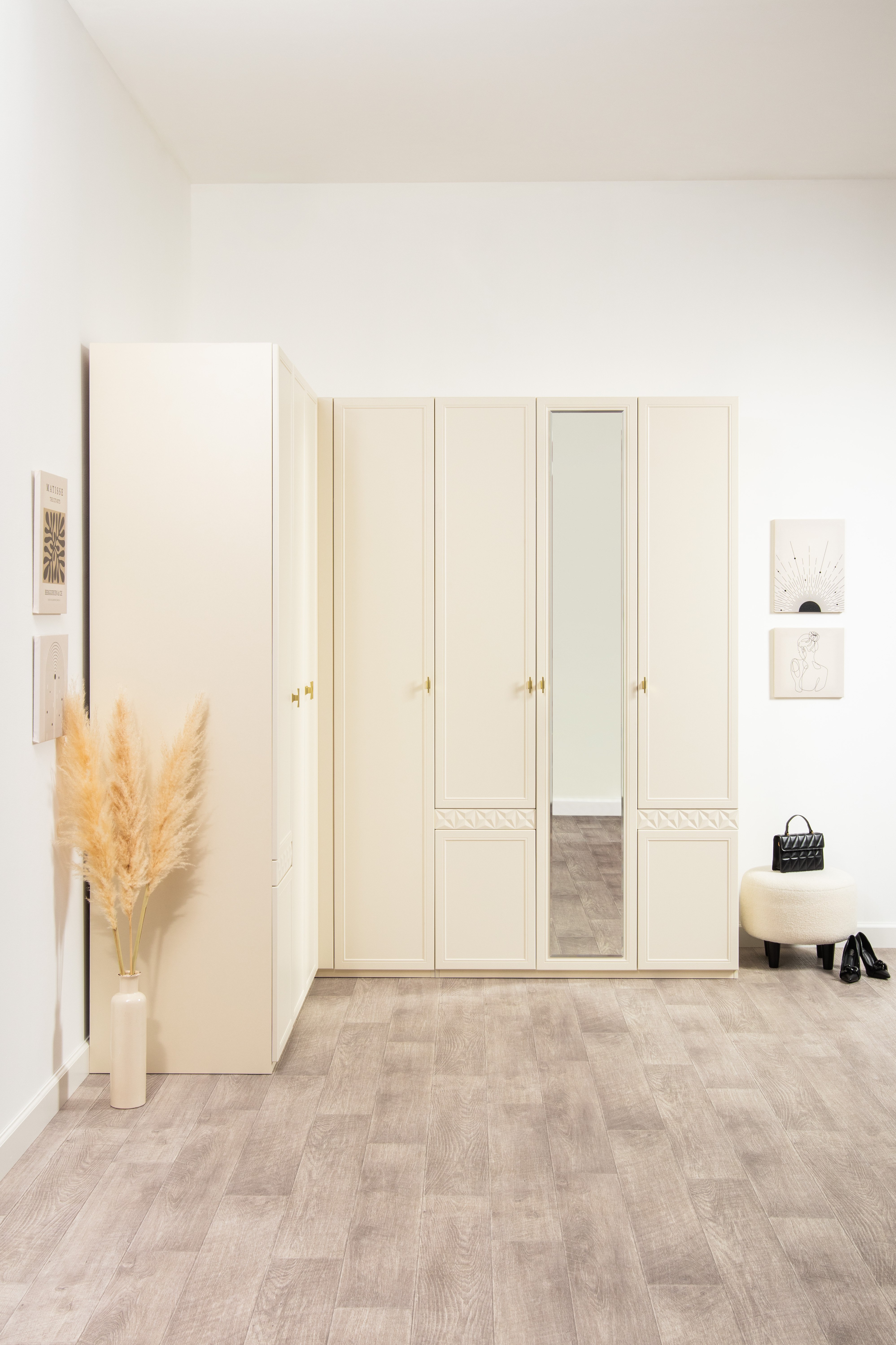 Шкаф угловой Марион 16.339 слоновая кость С341 PE, слоновая кость 6898 ПВХ (собирается на любую сторону)