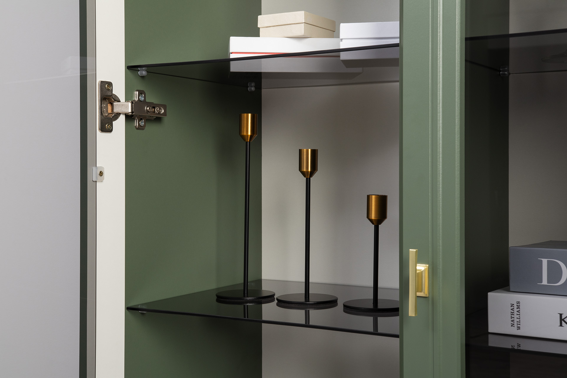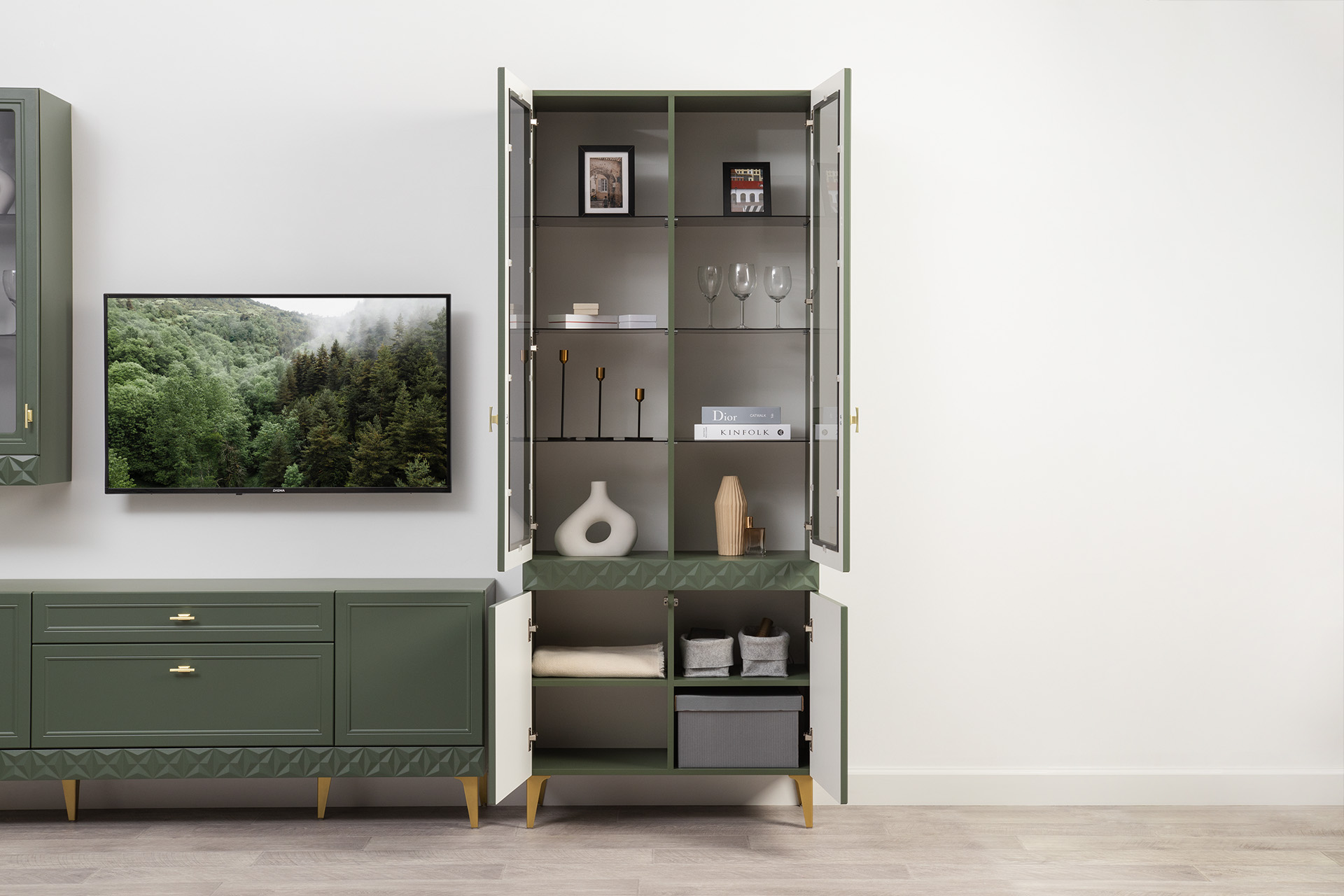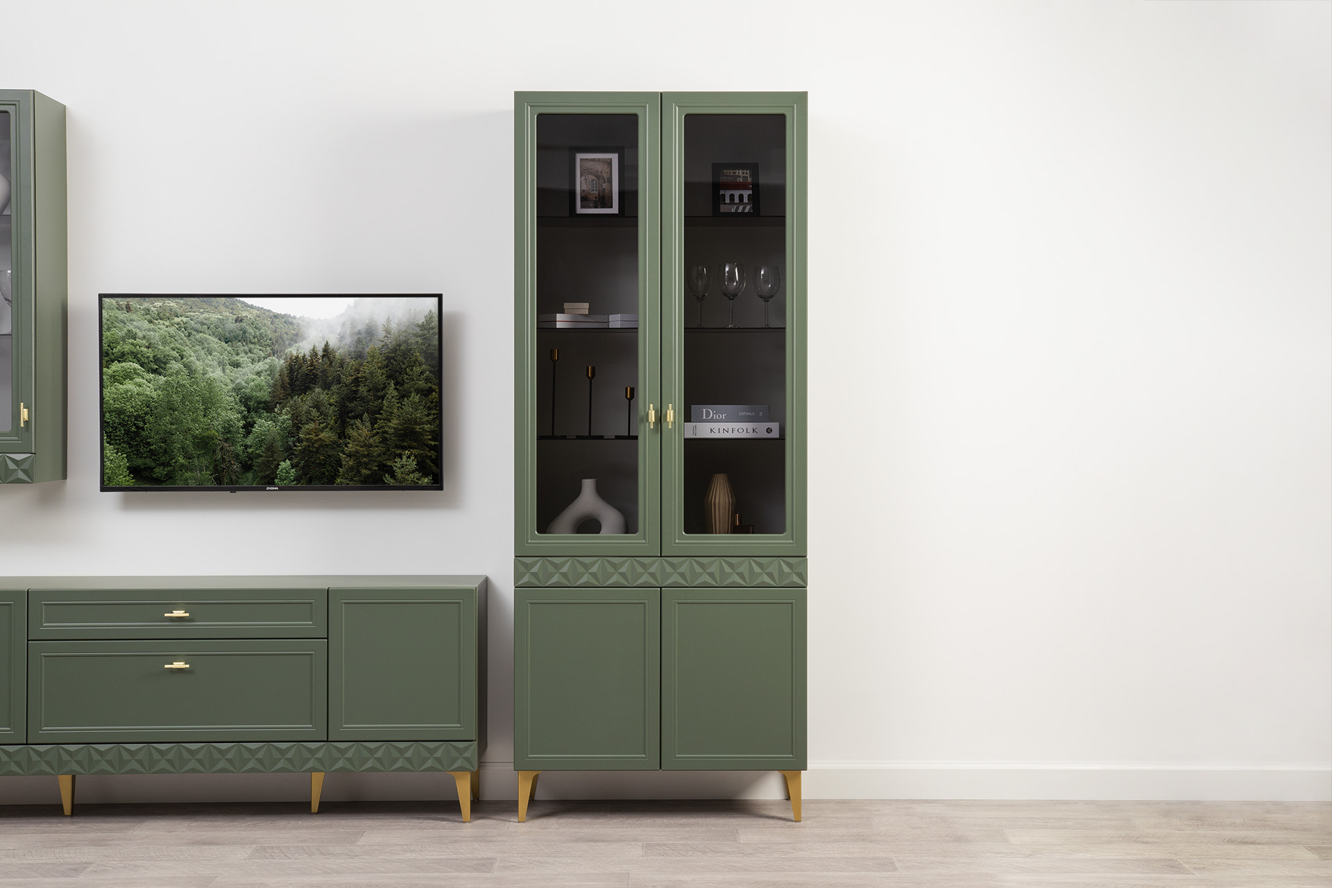 Шкаф-витрина Марион 16.397.02 дымчатый зеленый K521, олива шагрень AG 1050 ПВХ