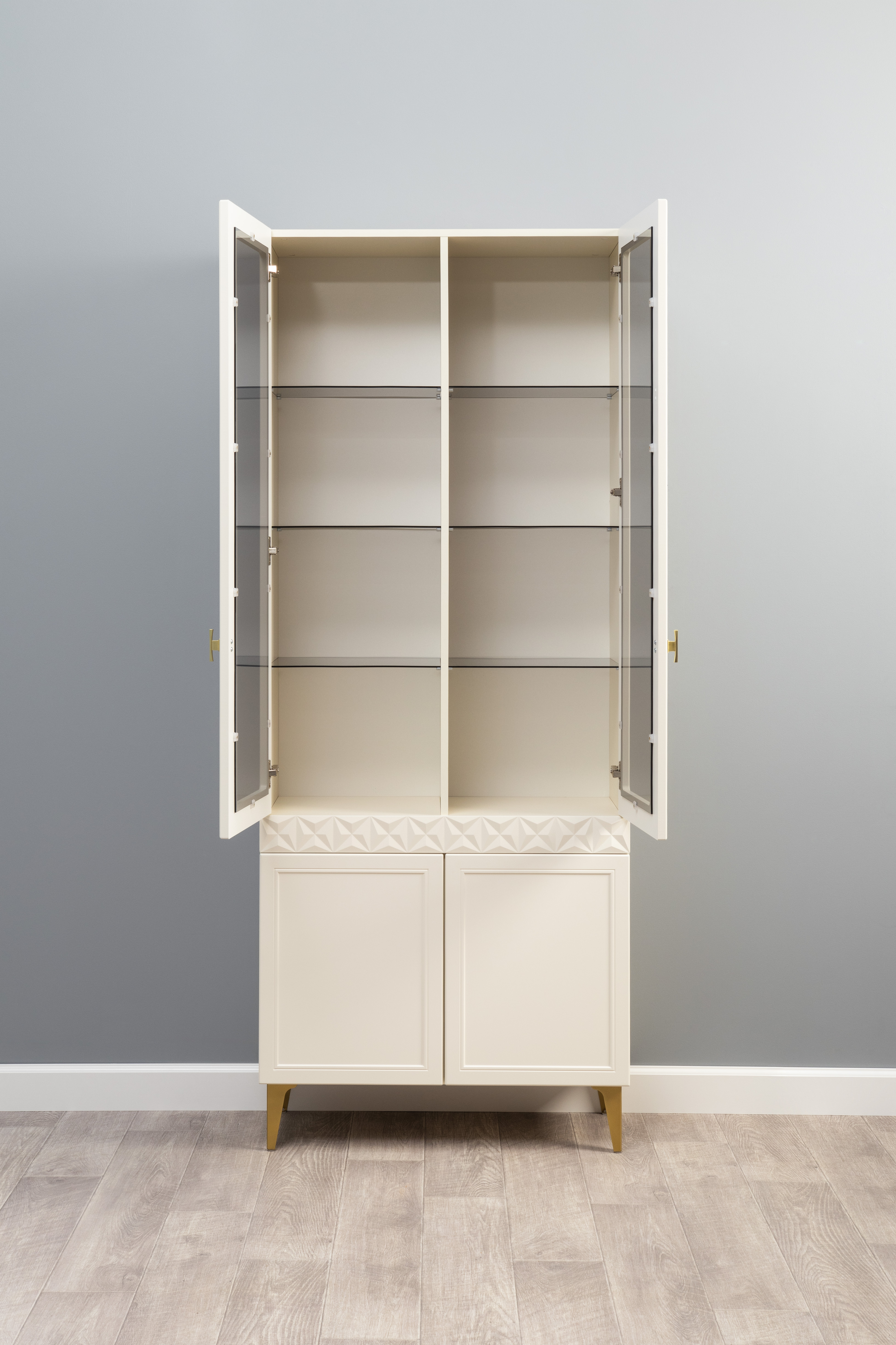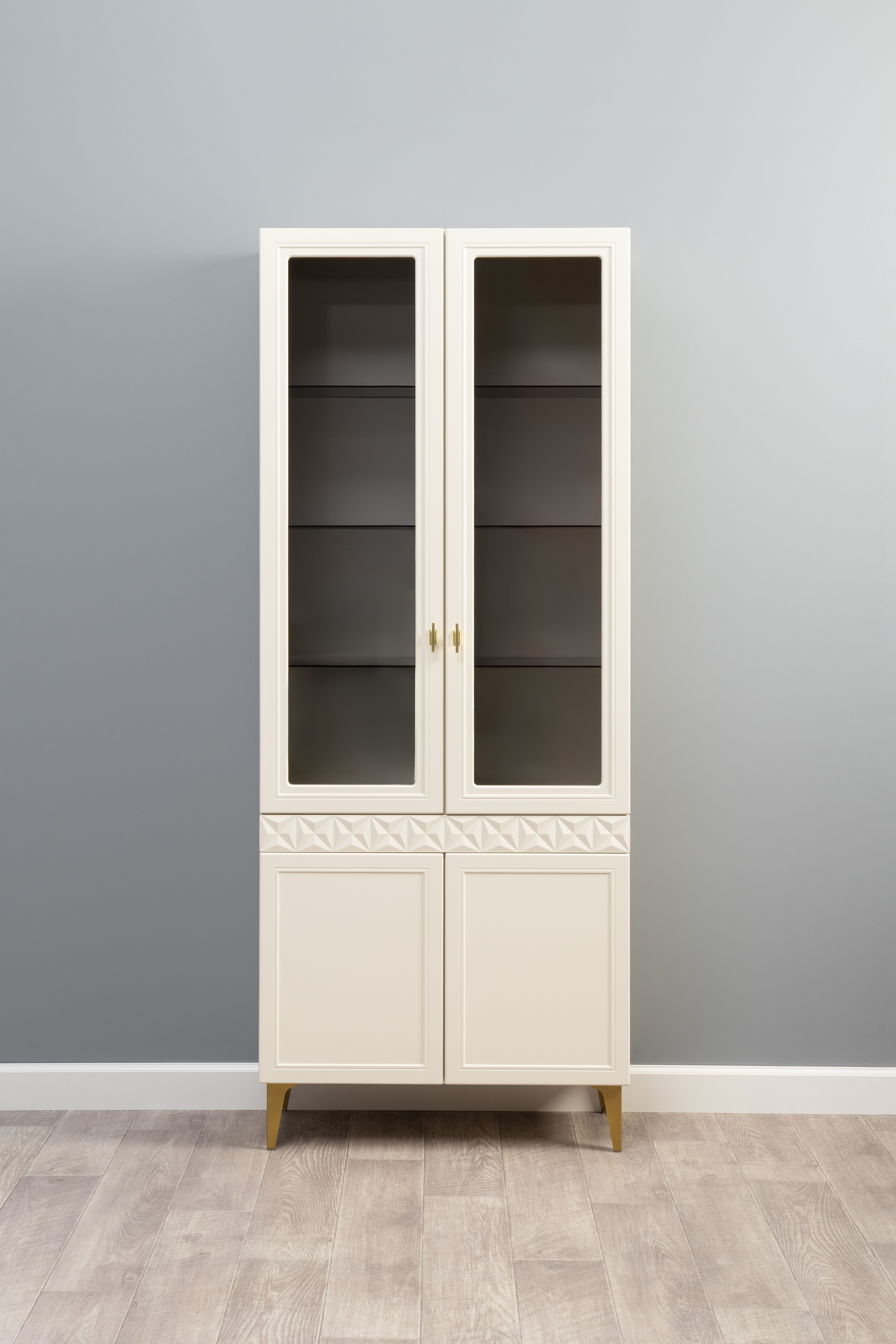 Шкаф-витрина Марион 16.397.02 слоновая кость С341 PE, слоновая кость 6898 ПВХ