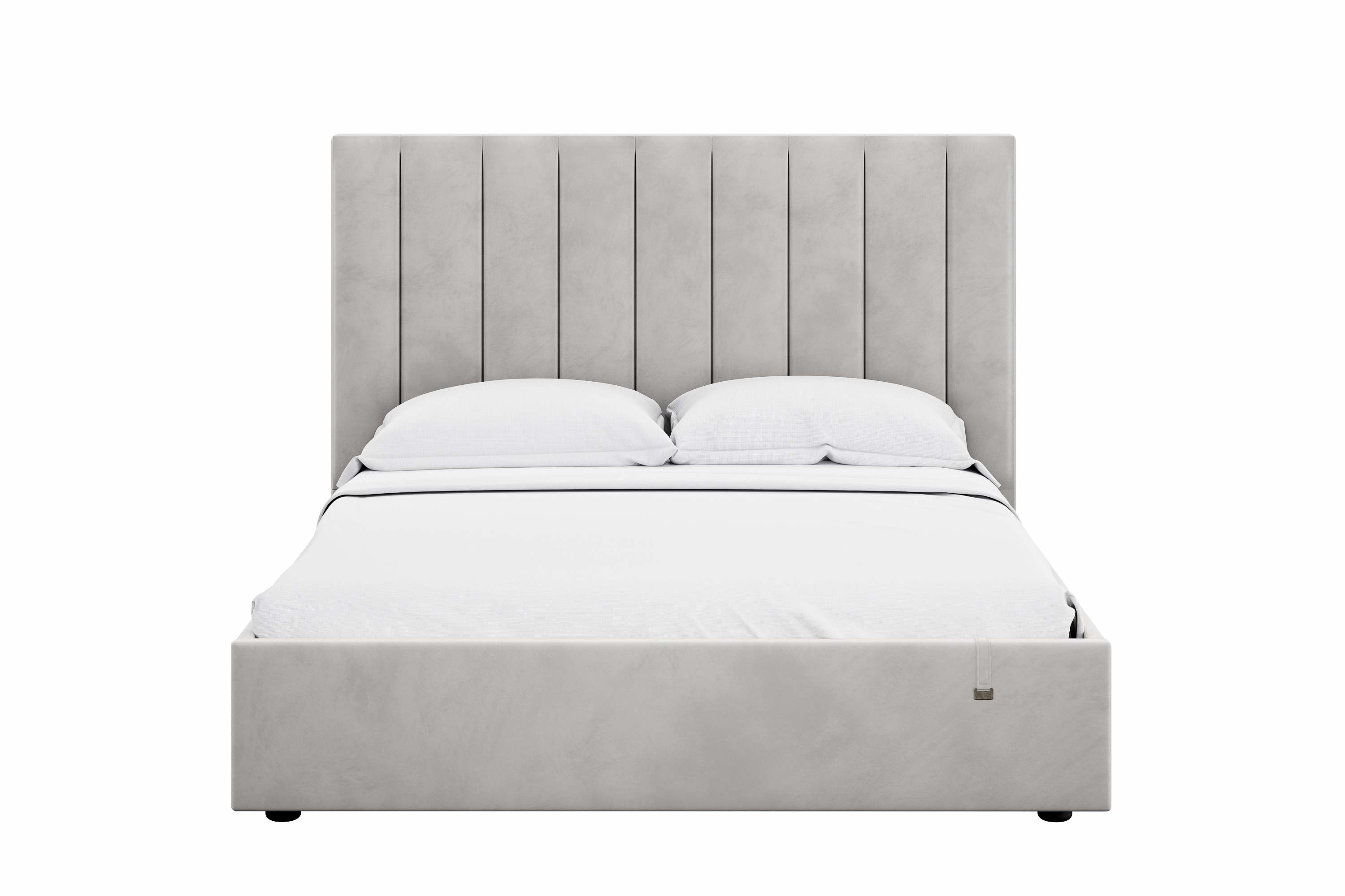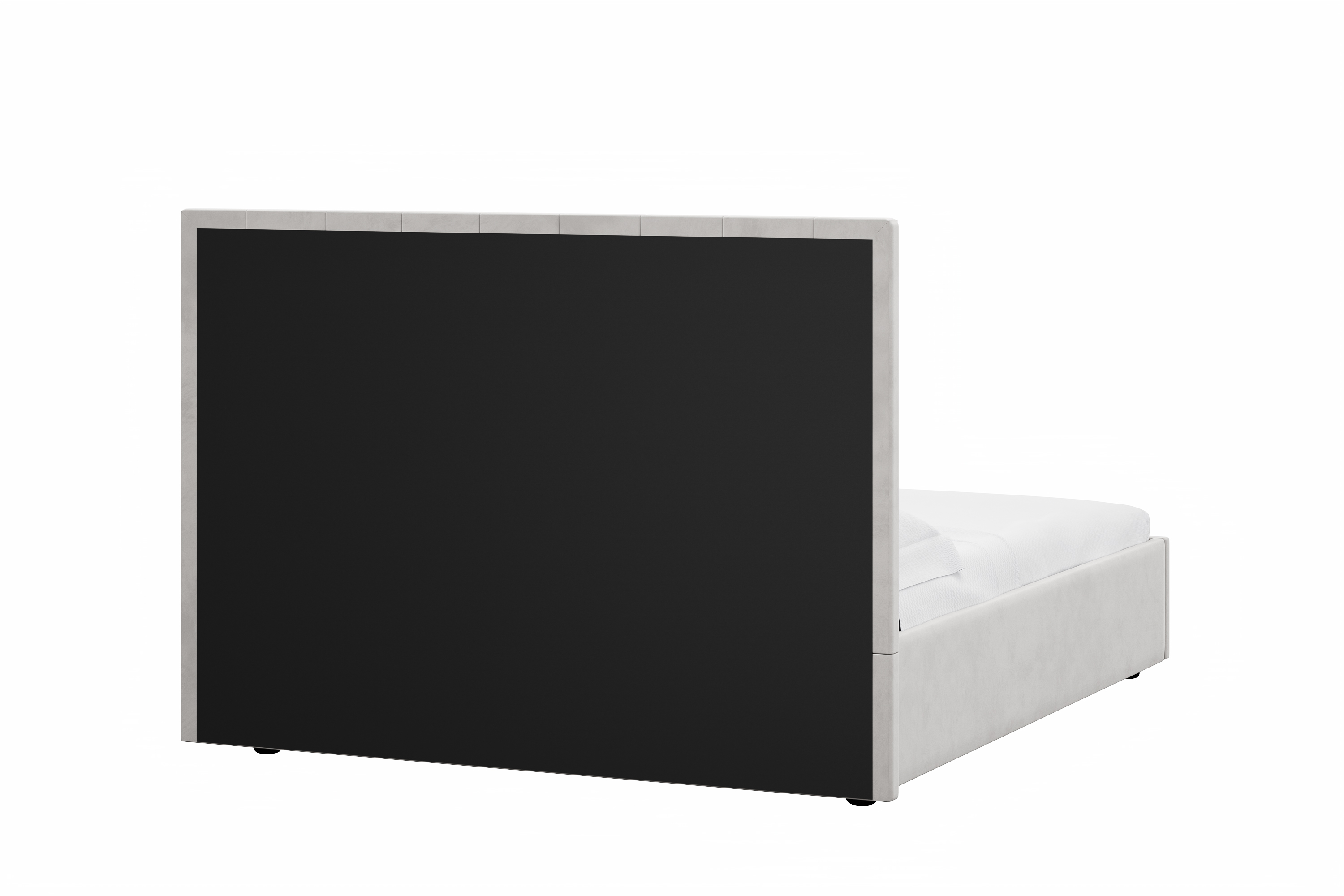 Спальня Дакота композиция 1 меренга, белый, с кроватью Ингрид/Ingrid 1600 велюр ультра смог/ultra smoke, пуф Альба 450 велюр ультра смог/ultra smoke